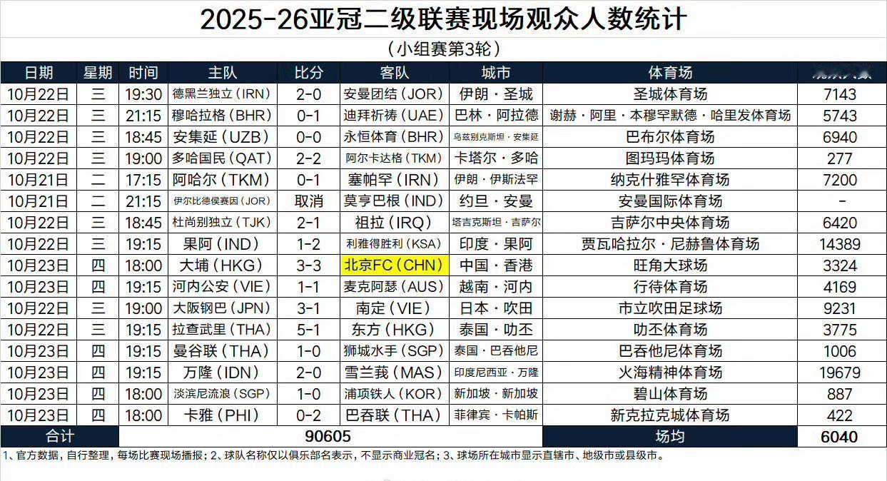 亚洲足球这么惨淡……二级联赛更加惨不忍睹。 亚冠联赛到场球迷最少的只有966人,亚冠二级联赛到场球迷最少的只有422人。 换成欧洲足球,第八级别的联赛也不止这么一点人吧?