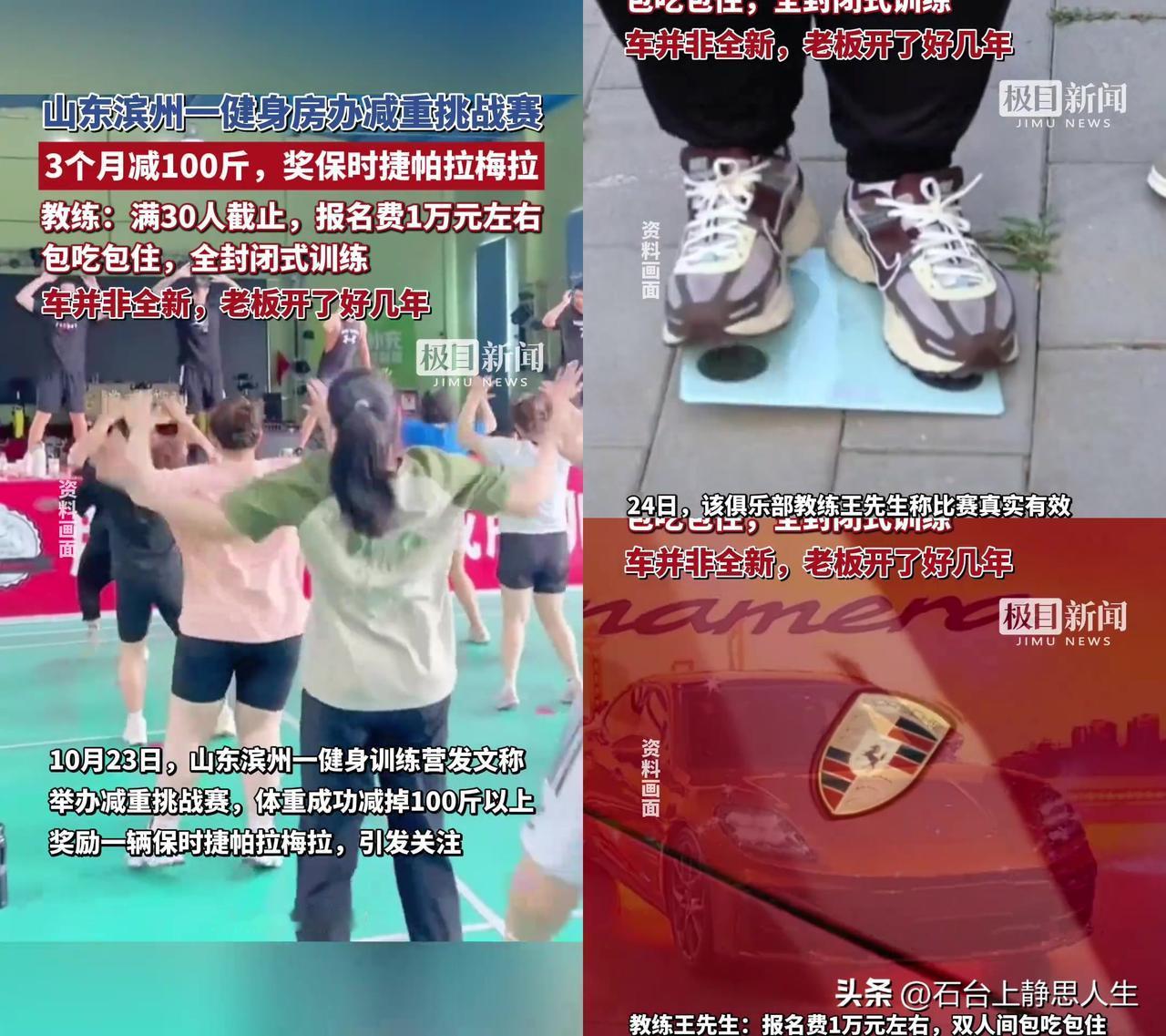 滨州这健身房的保时捷挑战,我算清账了,全是套路! 山东滨州一健身房搞减重赛:3个月减100斤奖老板开了几年的帕拉梅拉,报名费1万,包吃住全封闭,满30人截止,现在七八人报了。 有人说老板想换新车,30人报名费30万,旧保时捷顶多值20万,稳赚;也有人说减100斤得先胖到200斤,每天掉1斤多,比减肥药还邪乎;还有人说这速度会伤心脏,命都得搭进去。 我真是服了!这哪算减肥?根本是拿命换旧车啊!旧保时捷再香,也得有命开啊! 大家愿意为了辆旧车赌3个月健康吗?