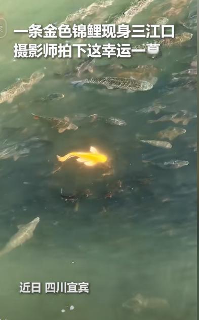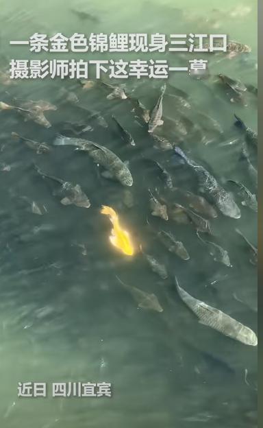 上人民日报了!四川宜宾,男子正在拍摄三江口,突然水里出现一抹金光,他一开始以为是太阳反光,结果,镜头拉近后,才发现是一条金色锦鲤现身三江口,他立马拍下这幸运一幕,接好运!网友:遇见锦鲤,见者好运! 近日在四川宜宾,有个三江汇流的地方叫合江门,最近一条金色锦鲤意外走红网络,引发热议。 事情的起因是,张先生(化名)趁着工作的空闲时间出来旅游放松一下心情,然而等他站在宜宾三江交汇的合江门边的时候,看着江水在夕阳下闪着金光,自然而然的就举起了手机,记录这一时刻。 然而令他没想到的是怕,就在他准备轻轻调整角度的时候,突然被屏幕里面一条闪闪发光的金鱼吸引住了,随后等他看向水里面的时候发现正是一条金色的锦鲤。 张先生十分激动于是就赶紧将这一幕拍了下来,分享到了短视频平台上面,不过,这段视频上了网之后就变了味道,视频里,傍晚柔和光线下,金鲤在黑鱼中悠游,画面很吸引人。 很多网友看到了之后,在评论区说到这分明就是“许愿池”,大家忙着转发,为孩子高考顺利、为生意顺利祈福。 甚至还有一些网友在下面评论说他一个本地人而且还经常会去哪里散步都没有见过这样的情景,夸赞张先生实在是太幸运了。 这次特别之处还在于,锦鲤对水质要求高,它不是本地鱼,多半是放生的观赏鱼,而且金色锦鲤是多年生态保护的成果,是自然环境良好的直接证明,让保护生态这个现代口号,有了传统文化的温度,让人更容易理解和认同。 所以这条锦鲤的出现,不仅仅是生态治理效果的“晴雨表”,说明水质和生态状况良好,还反映了公众心理状态,人们需要一些积极的象征来获得慰藉和希望,更是传统文化和现代生态理念结合的产物,把传统的祈福文化和现实的环境保护联系在一起。 这条金鲤带来的真正价值,并不是某个愿望的实现,而是让人看到那片江水足够清澈,能让生命自由生长,这提醒我们,保护环境才是最重要的,也是能带来更多可能和希望的基础。 对此你还有什么看法呢? (信息来源 :人民日报 )