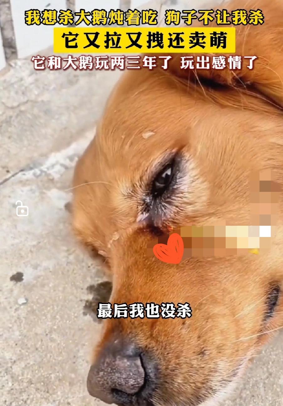 看把狗子给委屈的哭了?[笑哭] 今儿看到个超暖心事儿!河南一男子想杀大鹅炖着吃,刚把鹅按住,狗子就急眼啦,又是拉又是拽还卖萌,坚决不让杀。 你瞧视频里,狗子见男子拿刀,不但没退缩,反而凑上去蹭他手,尾巴都夹得紧紧的,呜呜叫着像受了天大委屈。大鹅也不扑腾了,脑袋往狗子怀里扎,委屈巴巴“嘎嘎”叫。男子最后无奈放弃,万物有灵真不假! 很多人说这像拍段子,但不管是不是,这一幕都让人感动。动物之间的感情纯粹又实在,它们不懂物种差异,只知道谁对自己好就护着谁。万物皆有灵呢!