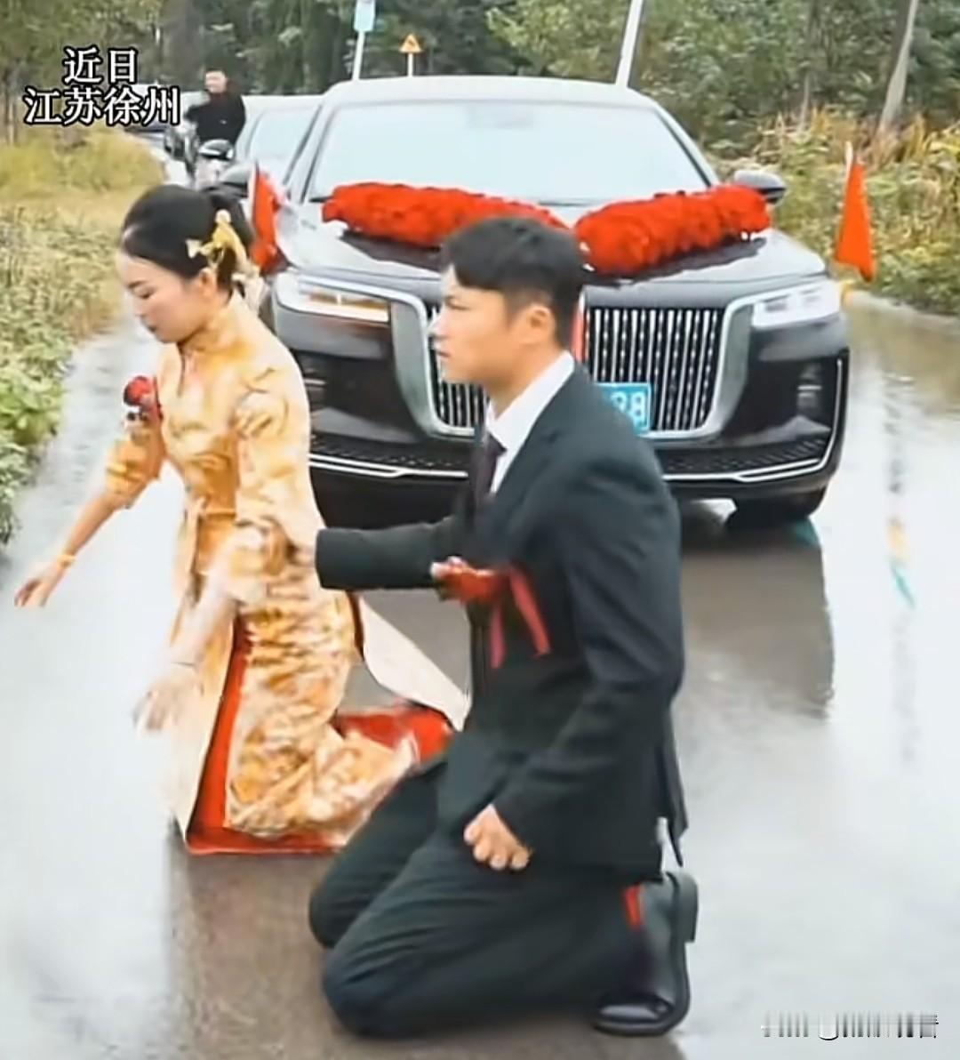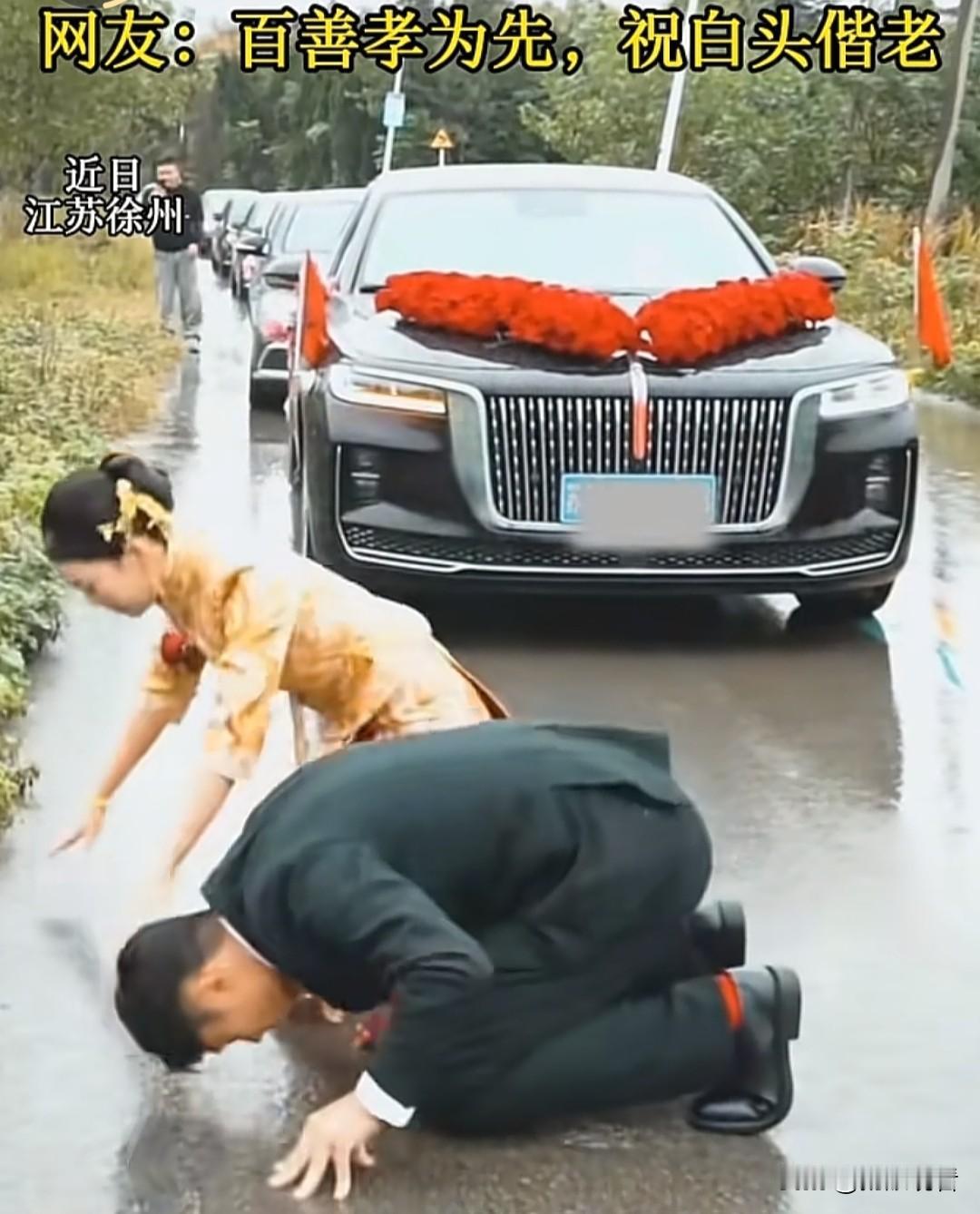 徐州新娘这一跪,看哭全网!这才是婚礼最该有的样子😭 我刷到徐州这场婚礼的视频,直接被戳中泪点了… 婚车正喜气洋洋往新郎家开,车里的新娘突然带着哭腔喊停:“师傅,前面是我爸的坟地!” 话音刚落,她就冲下车,不顾地上的泥土,“扑通”一声跪在了坟前。 “爸,我今天嫁人了…” 她哽咽着说出这句话,肩膀止不住地发抖 。更让人暖心的是,新郎没有半分犹豫,立刻跟着跪下,紧紧攥着她的手磕了三个头,还郑重承诺:“爸,您放心,我会好好照顾她”。 在场的人都红了眼眶,这一幕被传到网上后,连人民日报都转发了,网友们全看哭了: “婚纱沾泥算什么,这份孝心最金贵!” “对拜是恩爱,跪拜是感恩,这新郎嫁对了!” “一声‘爸爸我走了’,直接破防…” 都说婚礼要讲仪式感,但再豪华的排场,也比不上这发自内心的一跪。新娘补上了“二拜高堂”的遗憾,新郎懂她的牵挂,这份孝心和包容,才是婚姻最好的开始。 愿姑娘带着父亲的爱和新郎的承诺,把日子过得热气腾腾✨