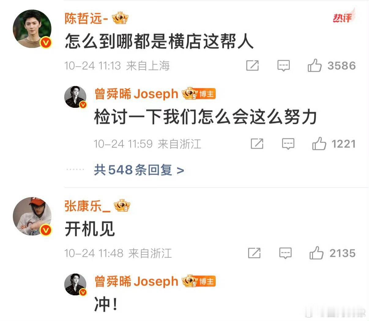 谁还没刷到曾舜晞评论区的“神仙阵容”?龚俊、李沁、陈哲远等一众好友集体现身,有剧里的默契伙伴,也有私下的玩梗搭子,每条留言都透着亲切感。这波横店好友团建,不仅看出曾舜晞的好人缘,更让人期待他们之后更多同框时刻!