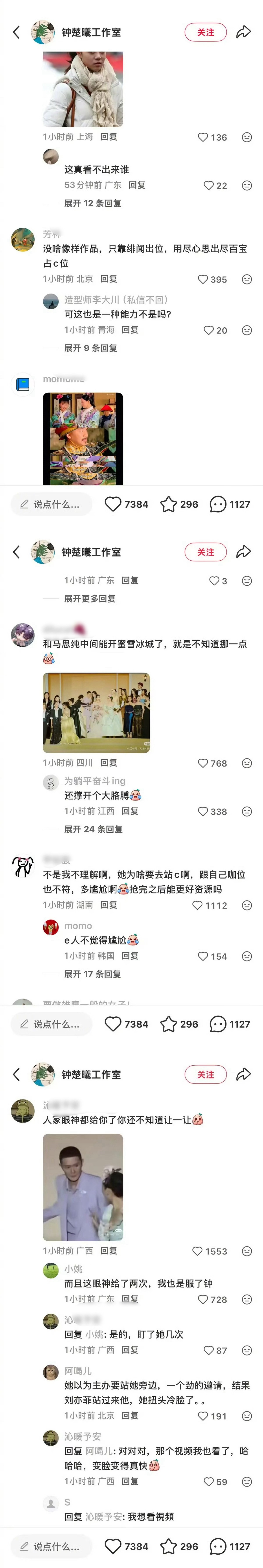 钟楚曦自己和工作室的评论区全是被网友吐槽抢C的