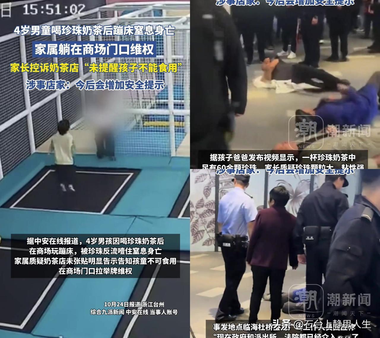 4岁娃喝珍珠奶茶蹦床窒息没了,家长居然告奶茶店没提醒?大家的讨论直接炸开了锅! 浙江台州这事儿,娃喝了奶茶里的珍珠,接着玩蹦床,珍珠反流噎住,没救过来。 可奶茶店说,小程序早标了“儿童得大人看着吃”,并非没有提醒啊! 还有大家爆,游乐场本来不让带奶茶,是家长偷偷带进去的! 再说蹦床的规矩,刚吃了东西不能猛跳,这常识咋忘了? 有人骂“自己娃吃啥要别人贴脸提醒?”还有人问“偷偷带奶茶时,咋不想娃蹦起来会呛?” 并非想刺痛失去孩子的家长,但做父母的,是不是得先把“看住娃、守规则”放第一? 大家说,这事儿里奶茶店、家长、游乐场,谁该扛大头?