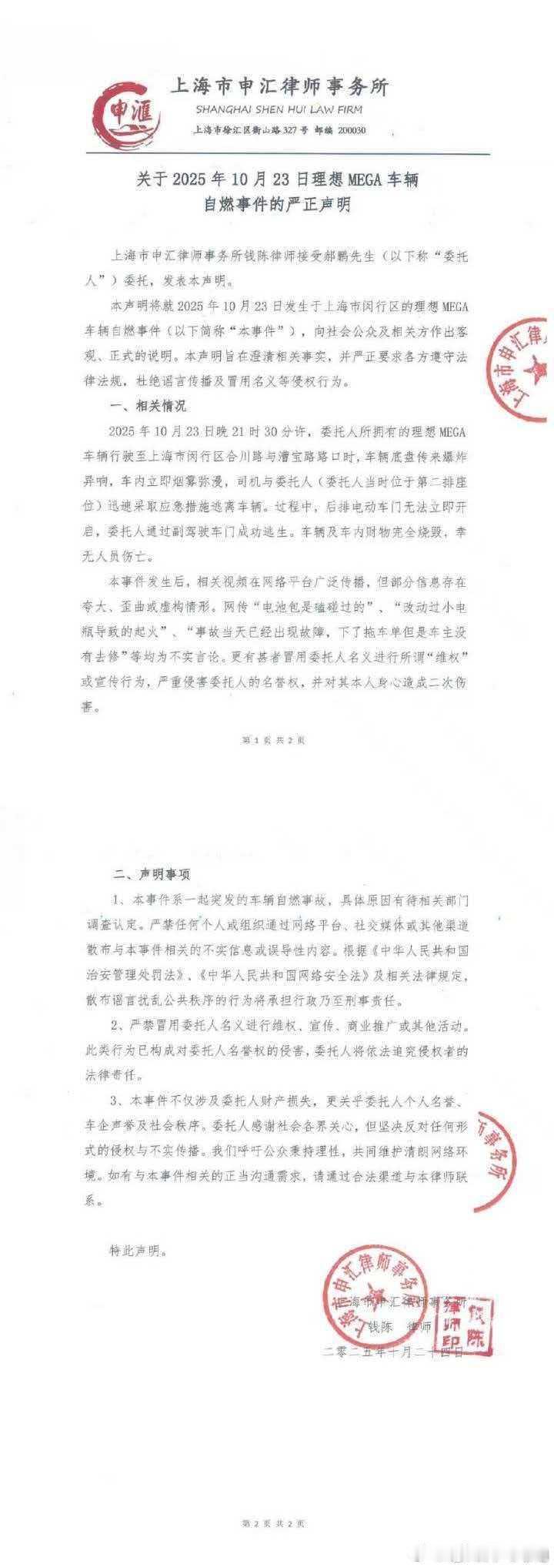 车主这么刚,那就等等正式的公告吧[并不简单]自燃理想MEGA车主发律师函