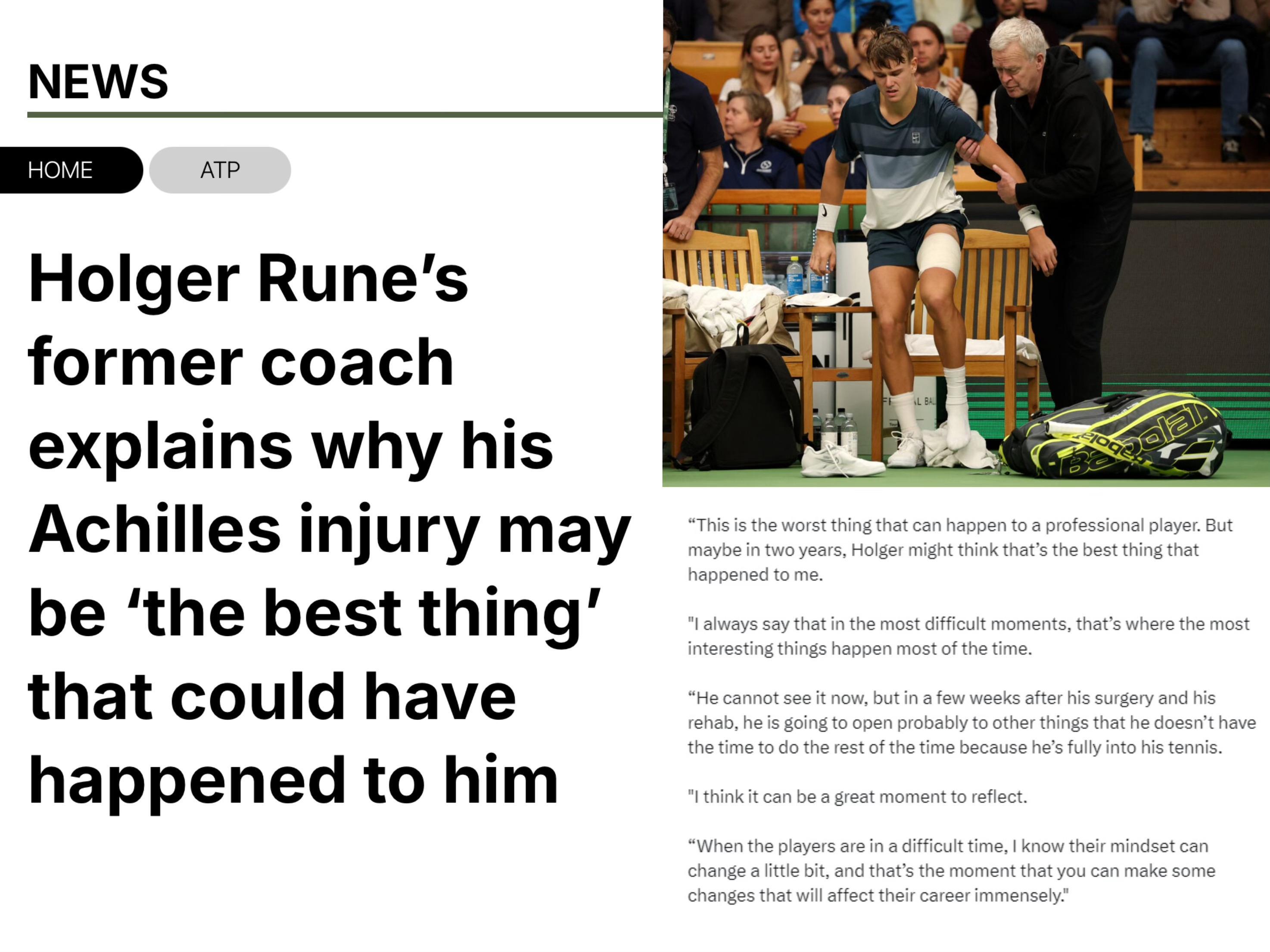 他现在还看不到这一点,但在完成手术和康复治疗后,他或许有机会去做一些过去因为全心投入网球而没时间去做的事情。我认为这段时间不妨进行一些深度思考,当球员处于困境时,他们的心态会有所改变,也正是这个时候,你能做出一些改变,这会对他们的职业生涯产生巨大的影响。”