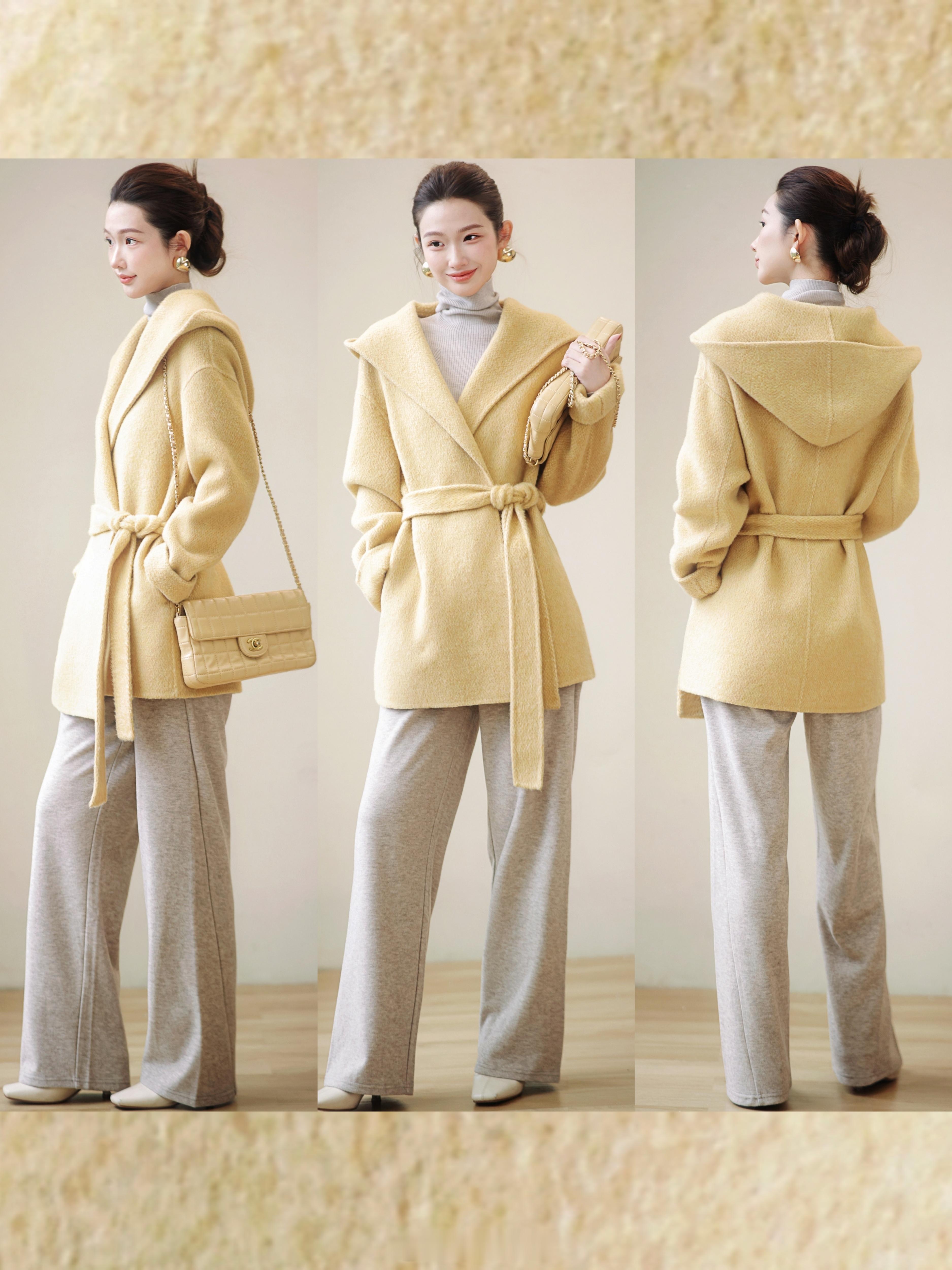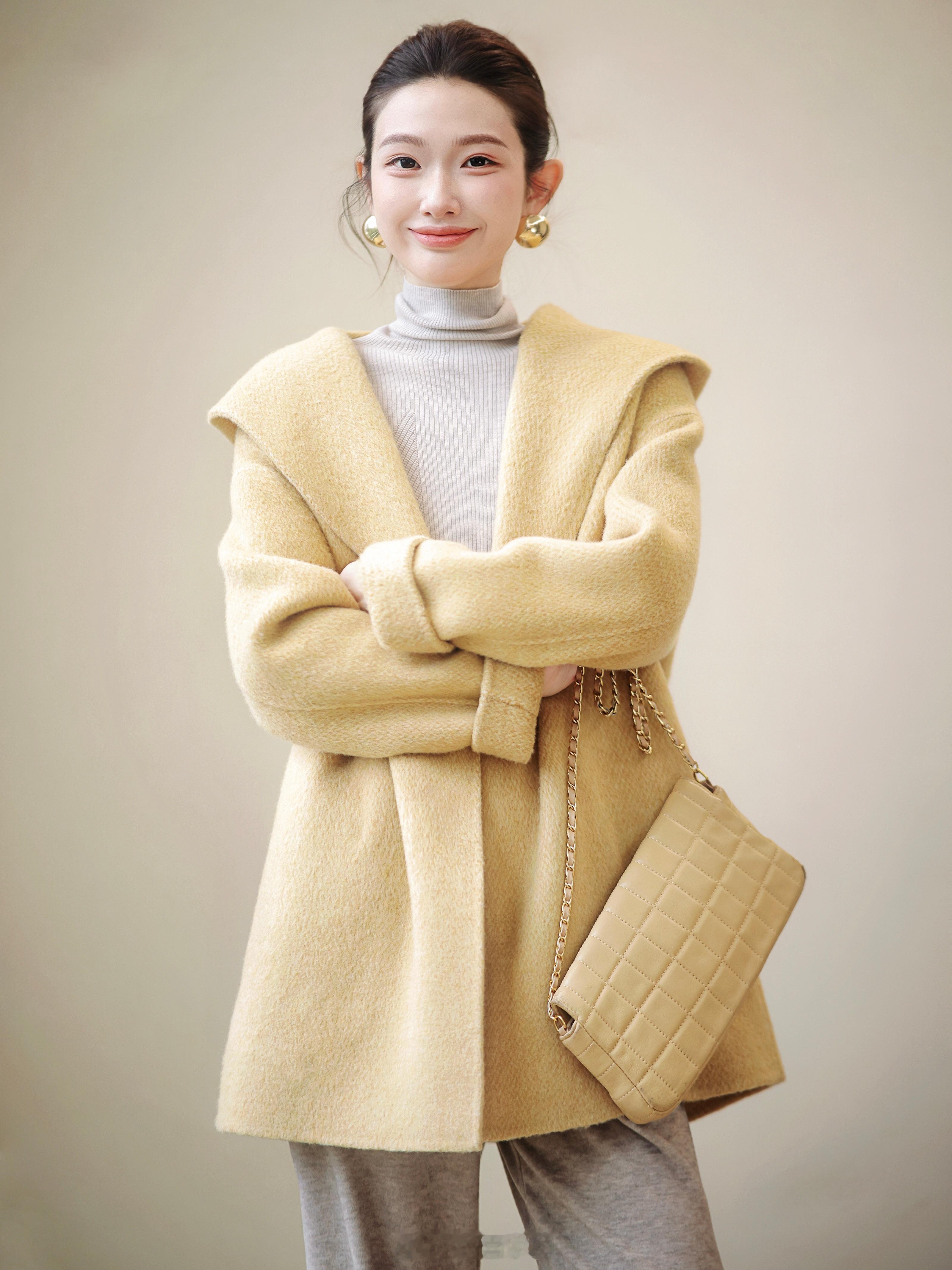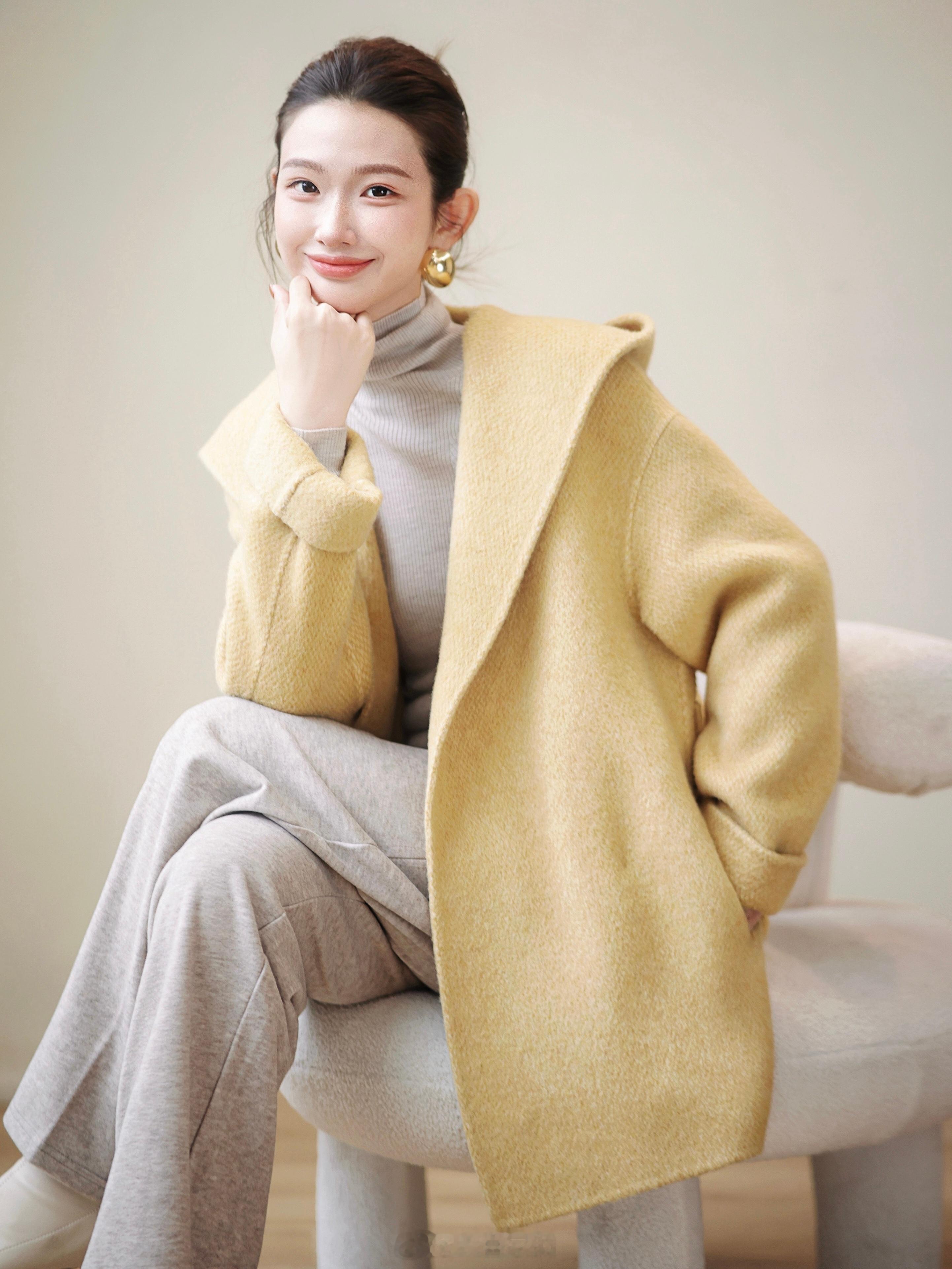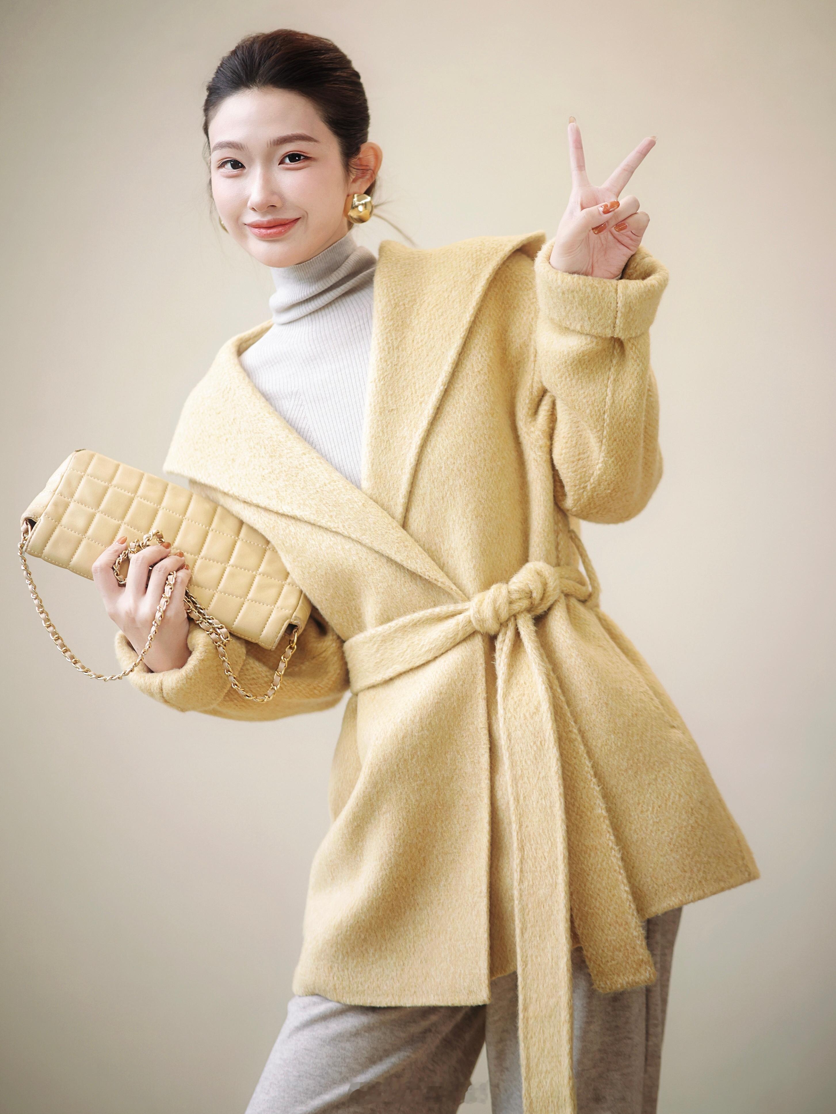 还是羊毛+羊绒的面料哈哈 暖呼呼的好舒服[害羞]