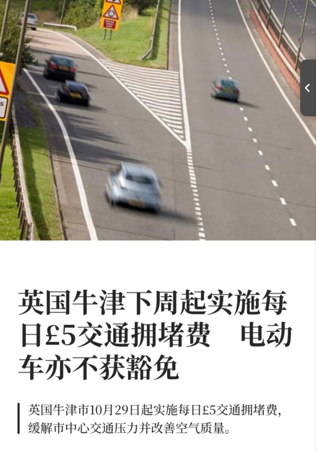 拥堵费+ZEZ(零排放)费,进一次城要5+8=13镑,牛津搞得比伦敦还狠啊… 连电动车也不给豁免