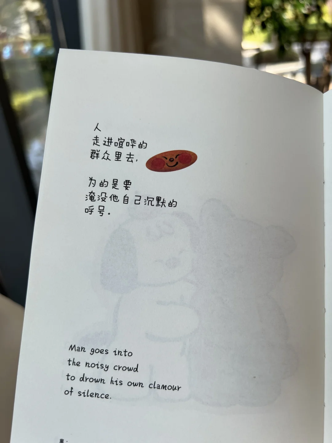 🟢今天为大家分享一本来自泰戈尔的童心诗集,用童真的态度去面对生活的痛苦和烦恼,站在小狗的视角,去感受纯粹的快乐,当下的体验。不用受过去的阴影束缚,也不为未来的道路担忧,生活的每一个路口,都是一次新的追逐