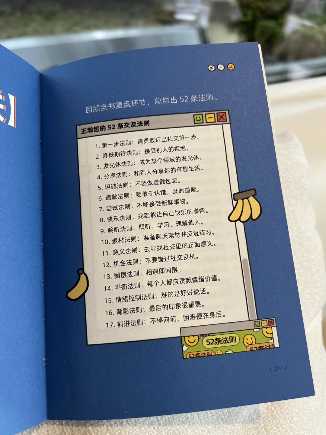 📗看图片就知道它不是一本枯燥的理论知识,作者是互联网很火爆的社交王:up主“中国boy超级大猩猩”(王瀚哲),他用一条游戏路线穿插整个交友流程,就像玩游戏打怪升级一样,从新手村开始、到新地图、逐渐去完成主线、支线任务