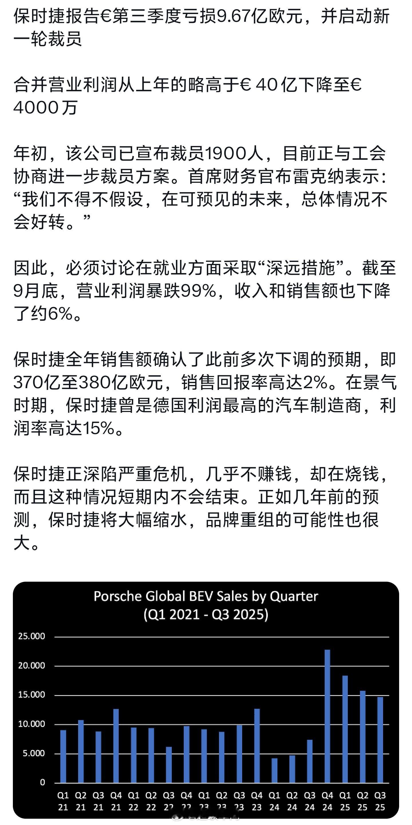「虽然在转型,但仍不可避免的陷入危机」保时捷报告第三季度亏损,并启动新一轮裁员计