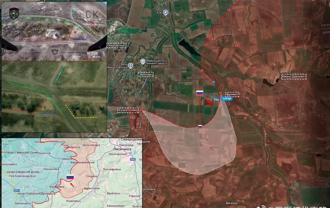 地理定位视频显示,俄军在 顿河君士坦丁罗夫卡 南部推进(图1),并在 维姆卡 以西取得新进展(图2)。
