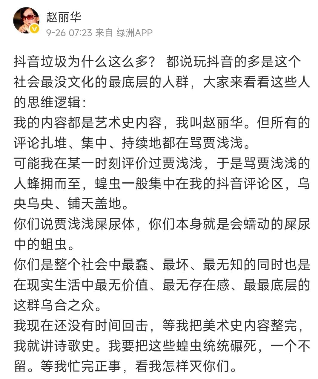 一个把劳动人民形容成蛆虫自认为高尚的人,想把这些如蝼蚁蝗虫的人都碾S的人,有什么脸让这些劳动人民去支持你所谓的友人的电影? 真的想不明白,一个有中国传统文化思想的人,怎么能这么贬低普罗大众? 到底是不是中国同胞? 早期文学家鲁迅、老舍、茅盾,哪一个是这么贬低劳动人民的? 哪一个是高高在上,吸血底层人却骂他们想把他们碾压的? 为了出名不择手段,脸皮也厚了!跟早期那些大作家差的不是一星半点!这就是资本捧出来的所谓艺术家? 还是那些自认为高贵的高等动物去她的梨花院看他的高级片吧!