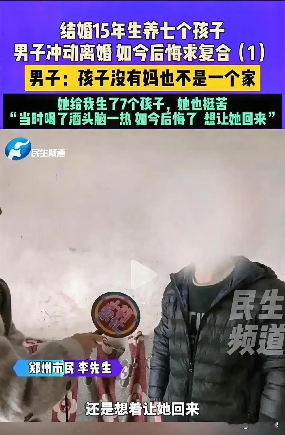 河南新密一男子离婚后独自抚养7个孩子,不料,没过几天就后悔了!他想和前妻和好,谁知,前妻的回答让他目瞪口呆了。 李先生和于女士结婚15年,育有7个子女。 为了这个家,妻子每天清晨5点就起床做饭,照顾孩子公婆,连件新衣服都舍不得买,全心全意操持这个家。 没想到,李先生听信朋友开饭店稳赚的承诺,非要妻子辞职帮忙。 可于女士觉得风险太大坚决反对,她觉和丈夫不是那块料。 而丈夫呢,觉得饭店有点起色,开始有点漂了。 结果饭店开张没多久就干不下去了,李先生不但不反省,反而整天在家跟老婆闹别扭。 而妻子为了7个孩子,一个人操持着这个家,也没那精力和他闹。 可丈夫却开店不如意的气都撒在妻子身子上,妻子更懒得搭理他了。 谁料,丈夫越想越气,竟主动提出离婚,要妻子离开这个家。 妻子听到丈夫的话,心凉半截,她觉的丈夫这10多年,她也受够了。 于是,两个毫不犹豫的就去办了离婚。 而丈夫还觉的自己终于扬眉吐气了,就这么看着妻子一点点看着自己曾经的妻子带着自己的东西离开了家。 哪料,没过几天,家里就乱套了,7个孩子在家闹的不可开交。 而丈夫此时才想到了妻子的好,知道妻子照料几个孩子有多不容易。 可不管怎么和跟妻子联系,妻子都没愿回来。 妻子还说:“这婚离的我一点不后悔!” 丈夫没辙,于是便求助晓莉帮忙,想让妻子看在孩子的份上回心转意。 当晓莉联系到于女士时,以为她会为丈夫一个坦白的机会。 谁料,妻子的态度非常坚决,还说:“离婚,一点不后悔,15年来付出所有却换来伤害还不够吗?” 现在李先生每天既当爹又当妈,真正体会到了前妻这些年的辛苦。 有人说,他离婚中是因为孩子父母都要照顾,自己忙不过来,想找个免费保姆而已。 也有的说,7个孩子也敢离,太看得起自己了吧,一点都不心疼自己老婆以,回去继续跟着受苦呢。 不难看出,当李先生面对七个孩子哭闹、家务琐事时,才真正读懂了前妻15年里的付出。 对很多家庭来说,“付出”两个字常常被当成理所当然,直到某天无人兜底,才知道其中的心酸。 那么,对这件事你怎么看? 来源:晓莉帮忙