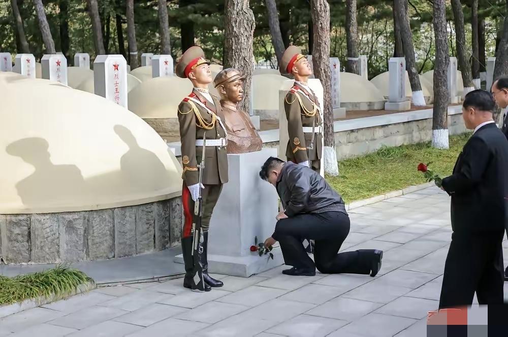 泪目了! 金将军单膝跪地向毛岸英烈士铜像献花! 这一跪,跪出的不只是敬意,更是中朝两国刻在骨子里的情谊!10月24日,正好是志愿军入朝作战75周年的重要日子,将军专程到桧仓郡志愿军烈士陵园拜谒,要知道这地方可是当年志愿军司令部的遗址,每一寸土地都浸着先烈的热血。 更让人动容的是,这已经是将军时隔一年(2023年7月)再次来这儿缅怀先烈。不是走个过场,而是在关键节点亲自到场,这份心意比任何口号都实在,也让所有人看清:中朝友谊从来不是说说而已,是一代代人用敬意和铭记守下来的。 看到将军跪地献花的画面,你是不是也想起了那些为和平牺牲的志愿军战士?你身边有没有关于志愿军的老故事,来评论区分享下吧~