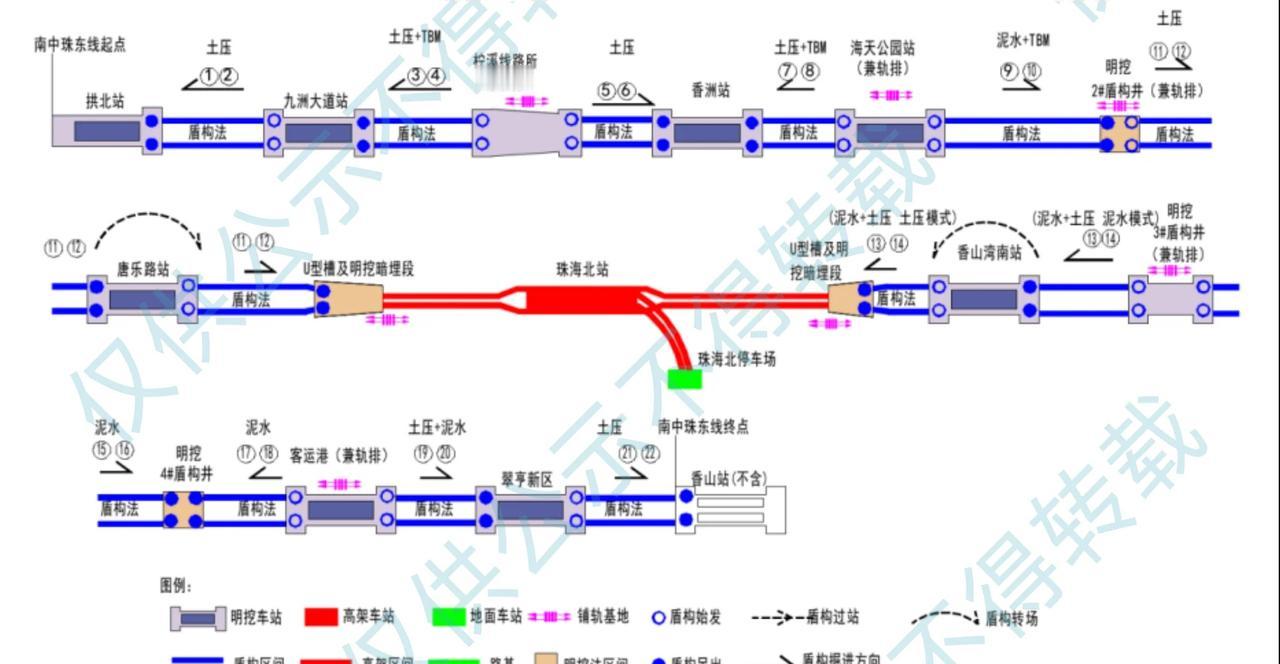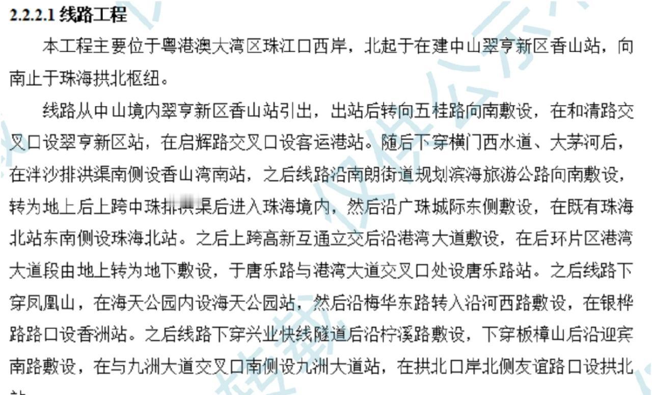 南中珠城际香山至拱北段第二次环评公示 线路长45.4km, 其中地上段约13.1km,设站10座(含在建香山站),其中珠海设站6座:拱北、九洲大道、香洲、海天公园、唐乐路、珠海北,中山设站4座:香山湾南、客运港、翠亨新区、香山 城际 城际铁路 铁路 轨道交通 广东城际 中山 珠海 广州地铁 拱北口岸