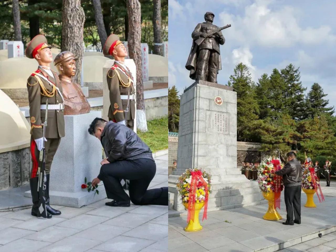 泪目了 看到金将军单膝跪地给毛岸英烈士铜像献花的画面 真的一下子红了眼眶!这哪是 简单的拜谒,每一个动作都藏着沉甸甸的情谊。 75年前,志愿军跨过鸭绿江和朝鲜人民并肩作战,桧仓郡的烈士陵园里,长眠着太多为和平牺牲的英雄。时隔一年,将军又在这个重要节点来到这里,这份记挂从来不是表面功夫,是刻在两国骨子里的羁绊。 有人说国与国的友谊靠利益,可中朝这情谊,是用鲜血凝成的,是代代相传的信任。这种历经岁月还依旧炽热的情感,真的太难得。你们看到这画面时,最先想到的是什么?