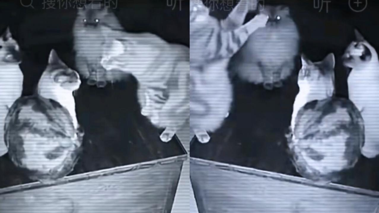 家里监控 随手一录, 竟抓拍到猫界 最神秘的“高层会晤”现场!四只流浪猫围成圈蹲