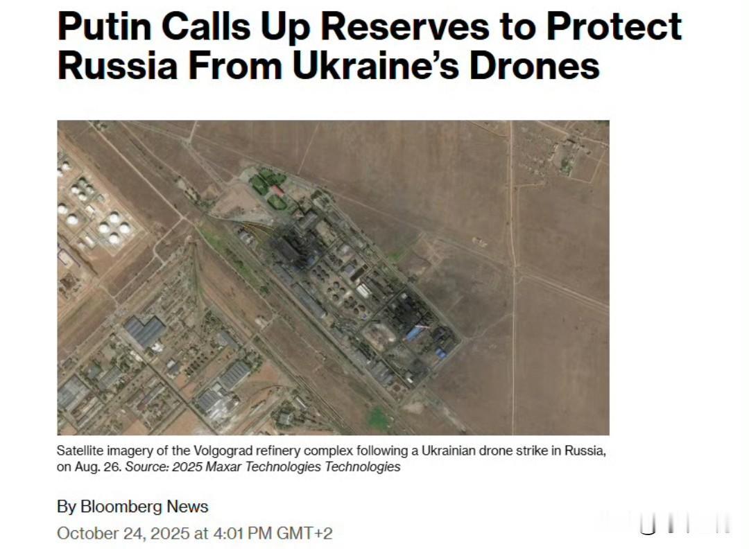 据彭博社报道,乌克兰日益频繁的无人机袭击正迫使普京增派部队保护关键基础设施。俄罗斯计划通过法律修订,允许"特别征召" 平民预备役人员守卫炼油厂、能源设施和交通枢纽,从而腾出现役部队投入乌克兰战场,同时避免触发全面动员。