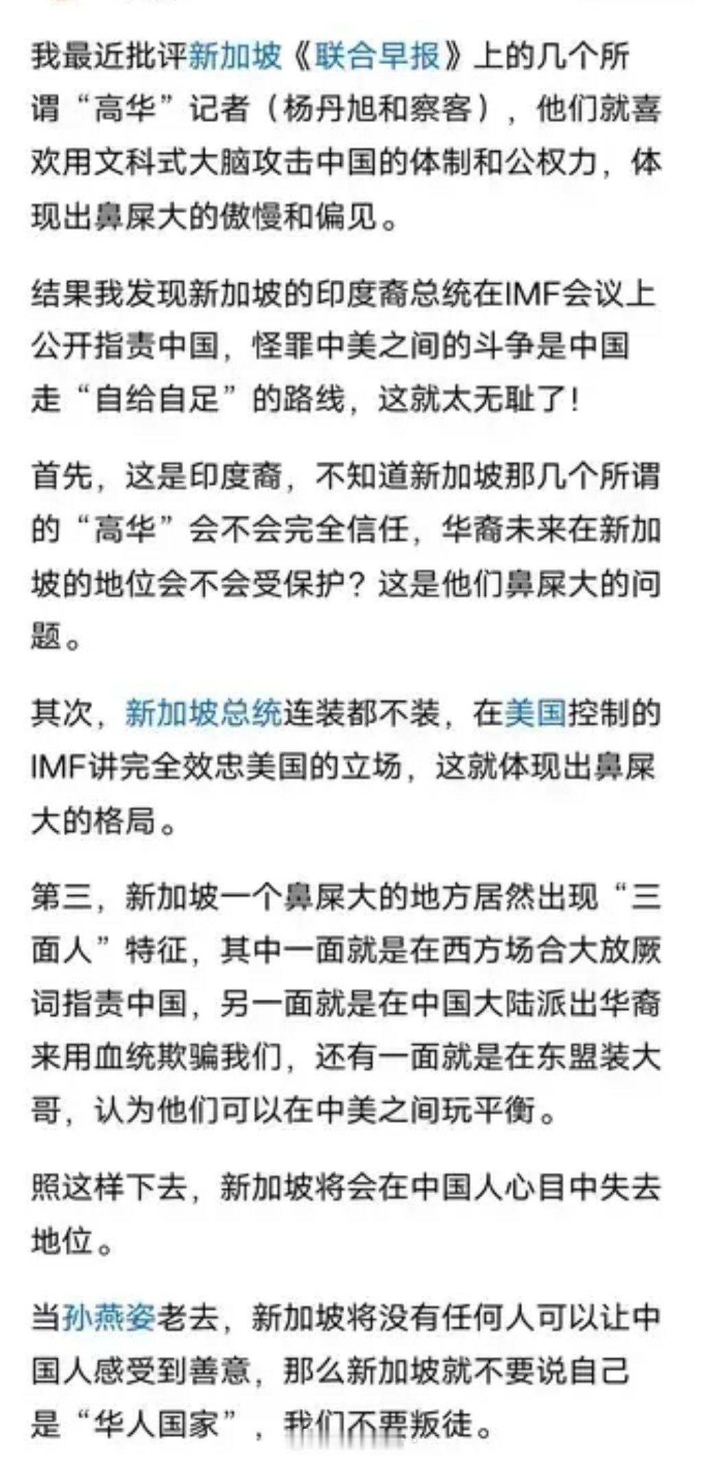 新加坡的敌意真的很大,特别是新加坡的华人媒体,它们对我们的傲慢甚至比西方白人还要严重!