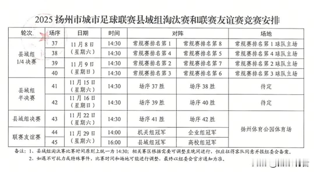 扬州🔥扬超淘汰赛规则太刺激!踢平直接点球决生死! 扬州的足球氛围要炸了!“扬超”县域组淘汰赛赛程终于定了,规则看得人心脏怦怦跳⚡ 单场淘汰制有多刺激不用多说吧?常规时间踢平不搞加时,直接拉去点球大战!这节奏简直是全程无尿点,每一秒都得攥紧拳头看。 📅关键赛程赶紧存好: 1. 1/4决赛:11月8日-9日(主场看常规赛排名高的队) 2. 半决赛:11月15日-16日(同上,主场优势太重要) 3. 决赛:11月22日(冲!扬州体育公园体育场见) 我觉得之前第八轮刚轰出15个球的神仙局,邗江队赵文星单场4球的状态还没看够,淘汰赛怕是要更疯癫。经开队稳扎稳打领跑积分榜,这次能笑到最后吗? 扬州的足球搭子速集合!评论区蹲个观赛搭子,决赛一起去现场吼破喉咙📣