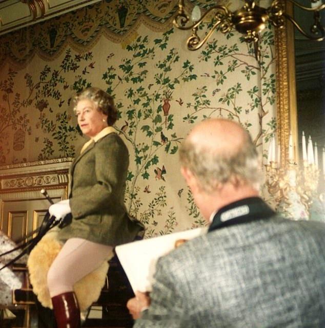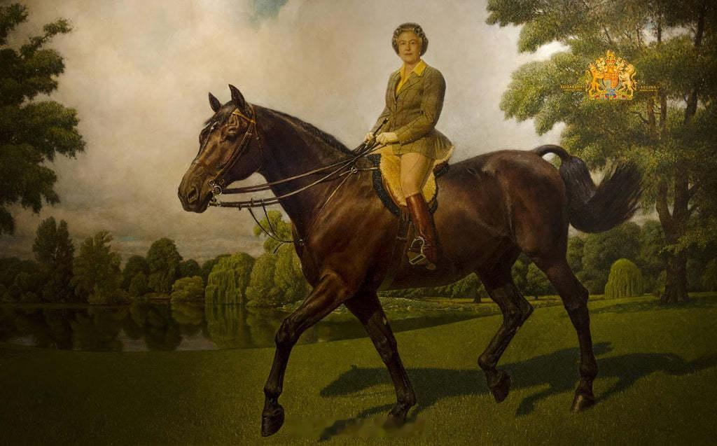 伊丽莎白二世女王在1991年的油画像🎨实际上,她是在白金汉宫骑着木质马上供美国艺术家Arnold Friberg作画。