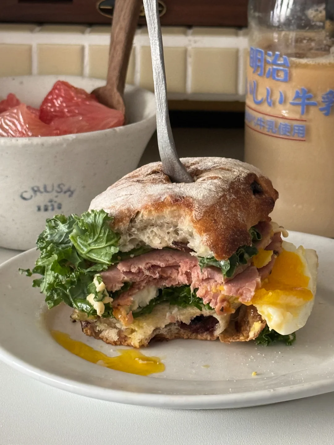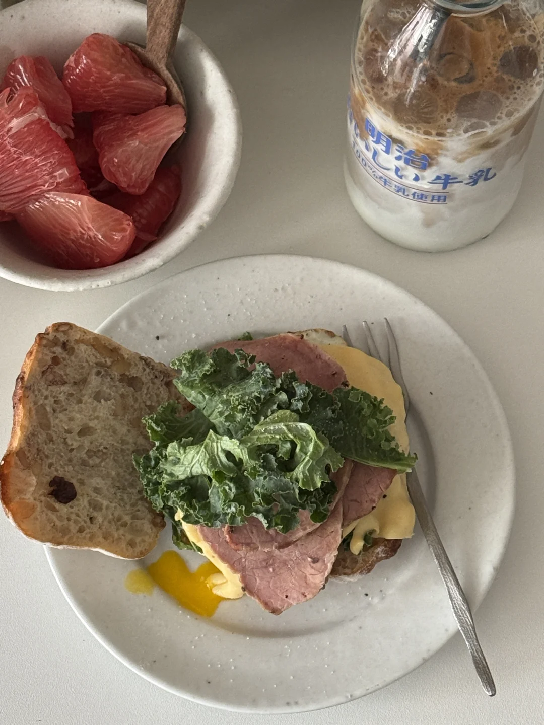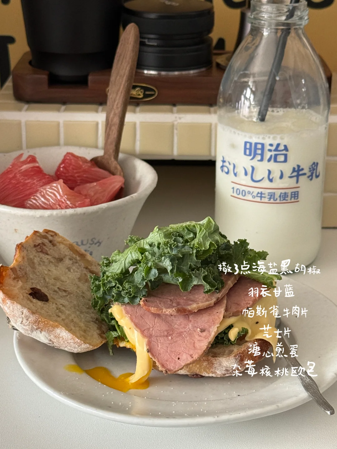 今日早餐|羽衣甘蓝做三明治还挺好吃的🥪