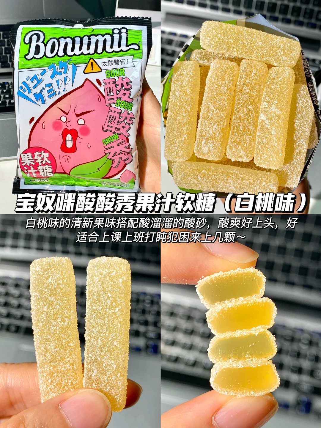 白桃味的清新果味搭配酸溜溜的酸砂,酸爽好上头,好适合上课上班打盹犯困来上几颗~