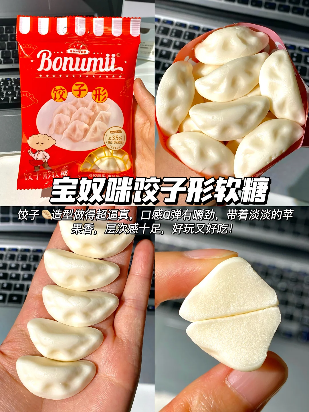 饺子🥟造型做得超逼真,口感Q弹有嚼劲,带着淡淡的苹果香,层次感十足,好玩又好吃!