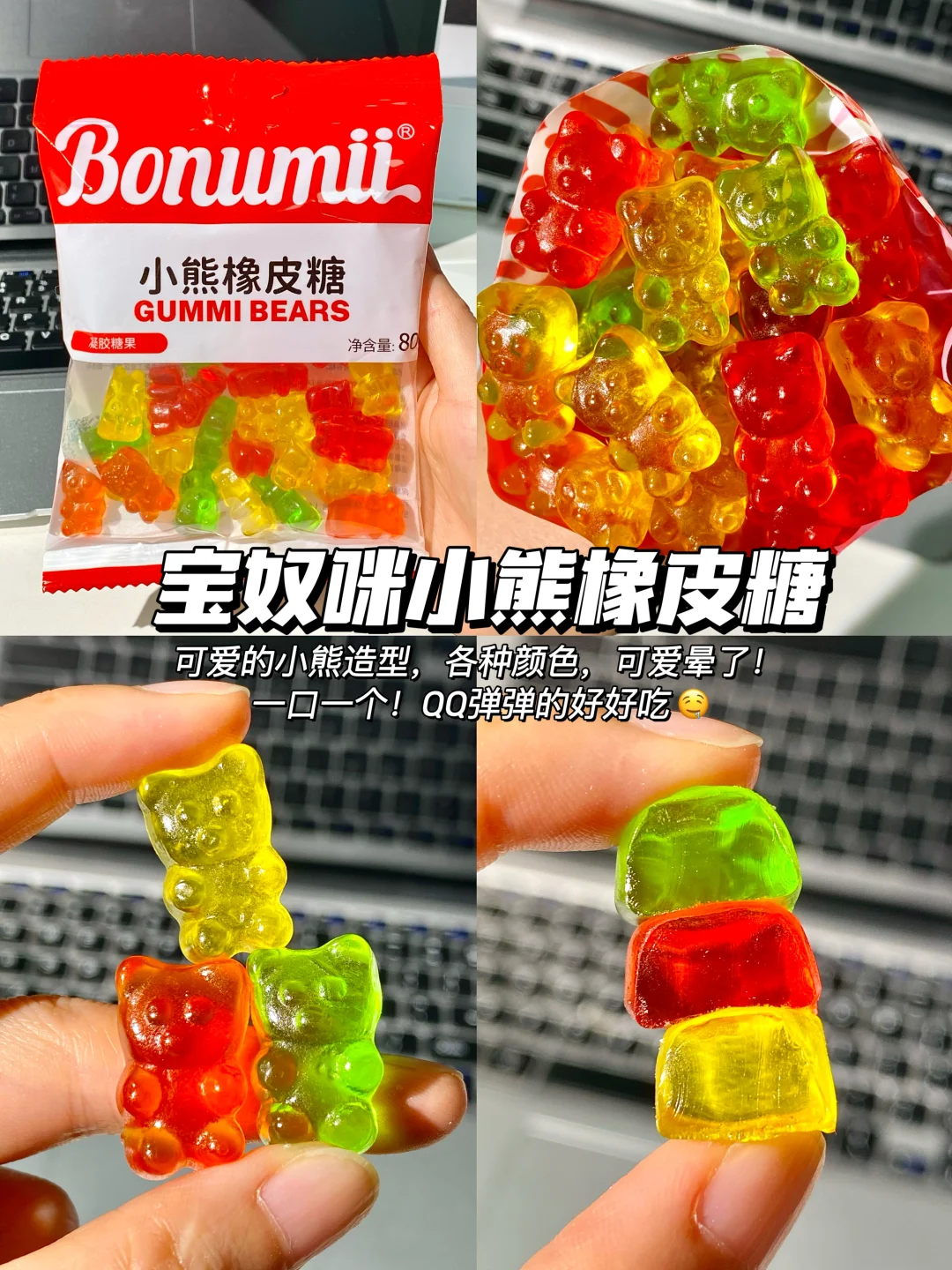 可爱的小熊造型,各种颜色,可爱晕了!一口一个!QQ弹弹的好好吃🤤