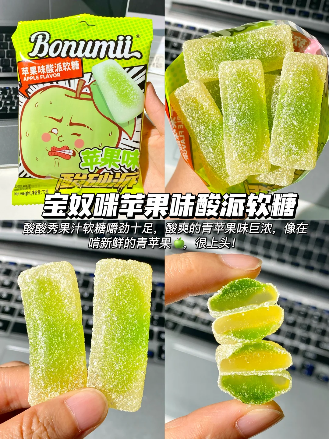 酸酸秀果汁软糖嚼劲十足,酸爽的青苹果味巨浓,像在啃新鲜的青苹果🍏,很上头!