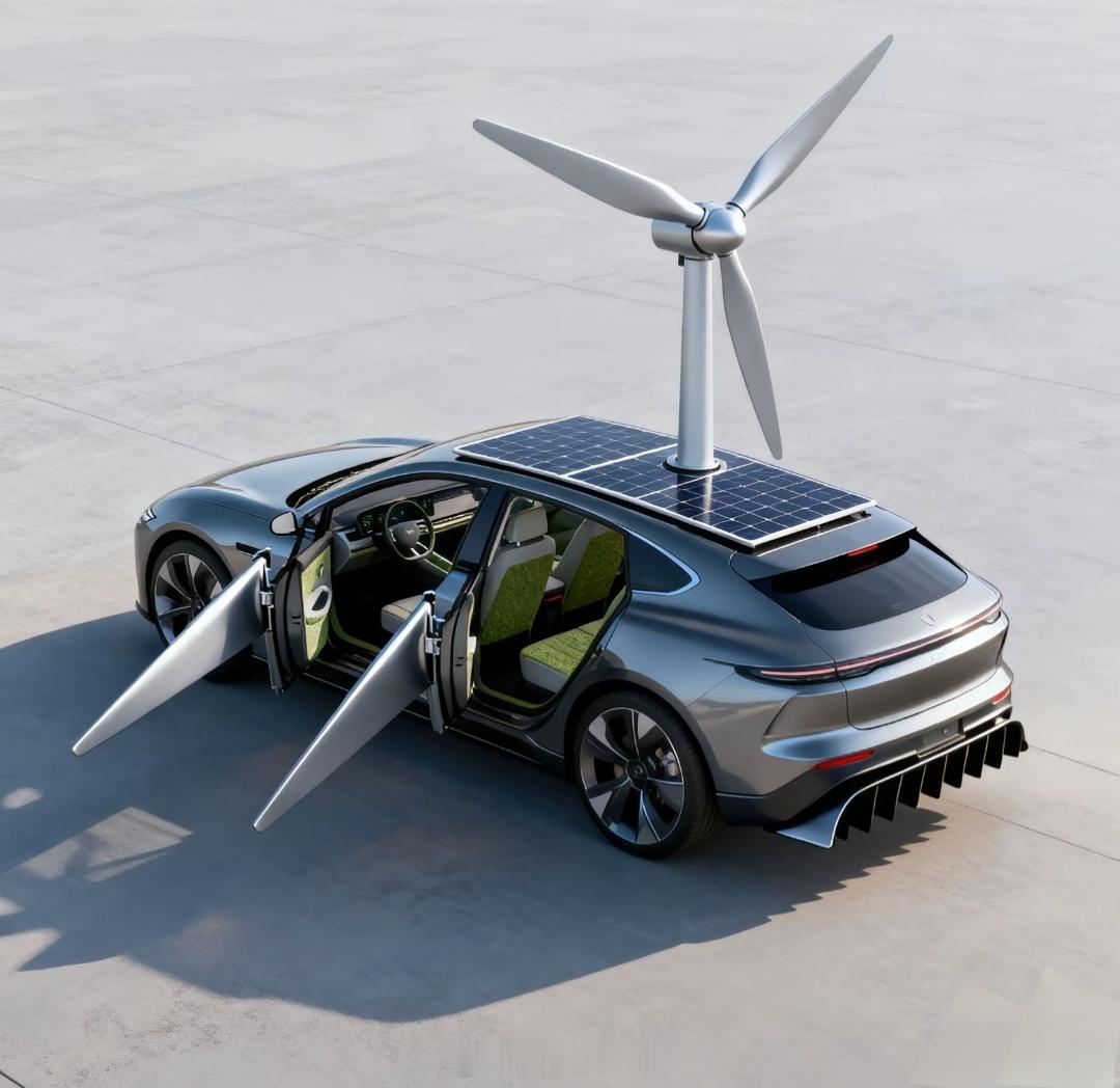 小学生设计的新能源汽车,车跑起来有风,风就发电;停车的时候上面还有太阳能发电,是不是解决了世界难题