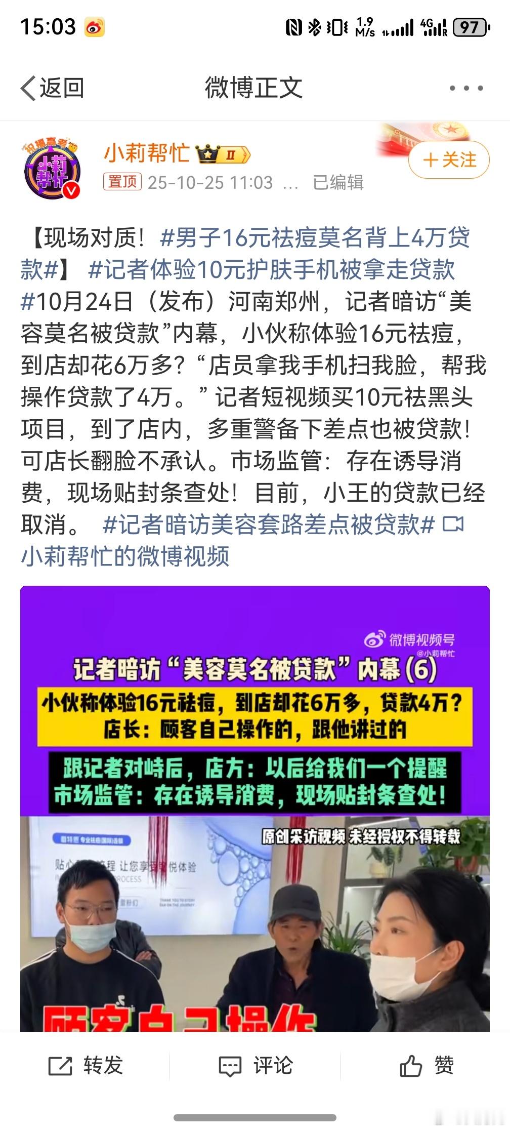 记者体验10元护肤手机被拿走贷款 套路又升级了,记得很多年前是把你骗进去体验护肤,然后各种推销,或者是偷换概念,前面的是免费的,后面上脸的就是收费的了,然后就被坑了[允悲]