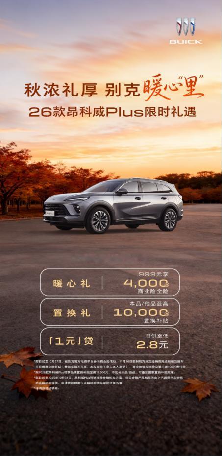 汽车行业促销策略创新成为推动市场回暖的重要力量。在油价持续下行的市场环境下,别克于10月24日推出"秋浓礼厚 别克暖心‘里’"限时礼遇活动,通过创新的保险补贴方案降低用户购车成本。活动具体内容为:购买昂科威Plus的车主,支付999元即可享受商业险全险,购买26款君越的消费者可获赠交强险,购买这两款产品的消费者可在"一口价"基础上叠加本品/他品置换均可享受10000元品牌置换补贴,并叠加享受至高15000元国补,而购买君威的消费者也可享受支付999元即可享受商业险全险的政策。这一促销政策与油价下行形成协同效应,为燃油车市场注入新活力。产品层面,昂科威Plus作为细分市场标杆车型,其"多10%"的设计理念体现在全方位配置升级。该车全系配备30吋一体弧面6K屏,搭载V5.0版本智能车机系统,集成全新AI大模型技术,在智能互联方面表现突出。车辆还采用双层声学夹层玻璃与ANC主动降噪系统,优化驾乘静谧体验。动力系统搭载2.0T可变缸涡轮增压发动机,提供三种工作模式可选,实现高性能与低油耗的平衡。君越车型凭借2.9米超长轴距与多项豪华配置,如方向盘加热、前排座椅按摩等功能,打造高端驾乘体验。君威车型则以动感造型与精准操控见长,满足年轻消费者对驾驶乐趣的追求。当前正值购车良机,消费者可同时享受品牌促销与使用成本降低的双重优势。感兴趣的朋友可通过别克官方渠道获取更多活动信息,亲临试驾还可享受现场订车特别权益。