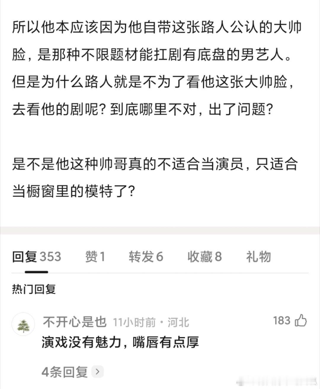 有网友说是因为演技给颜值祛魅,剧里动态和精修图判若两人。说的在理吗[柯基][柯基]
