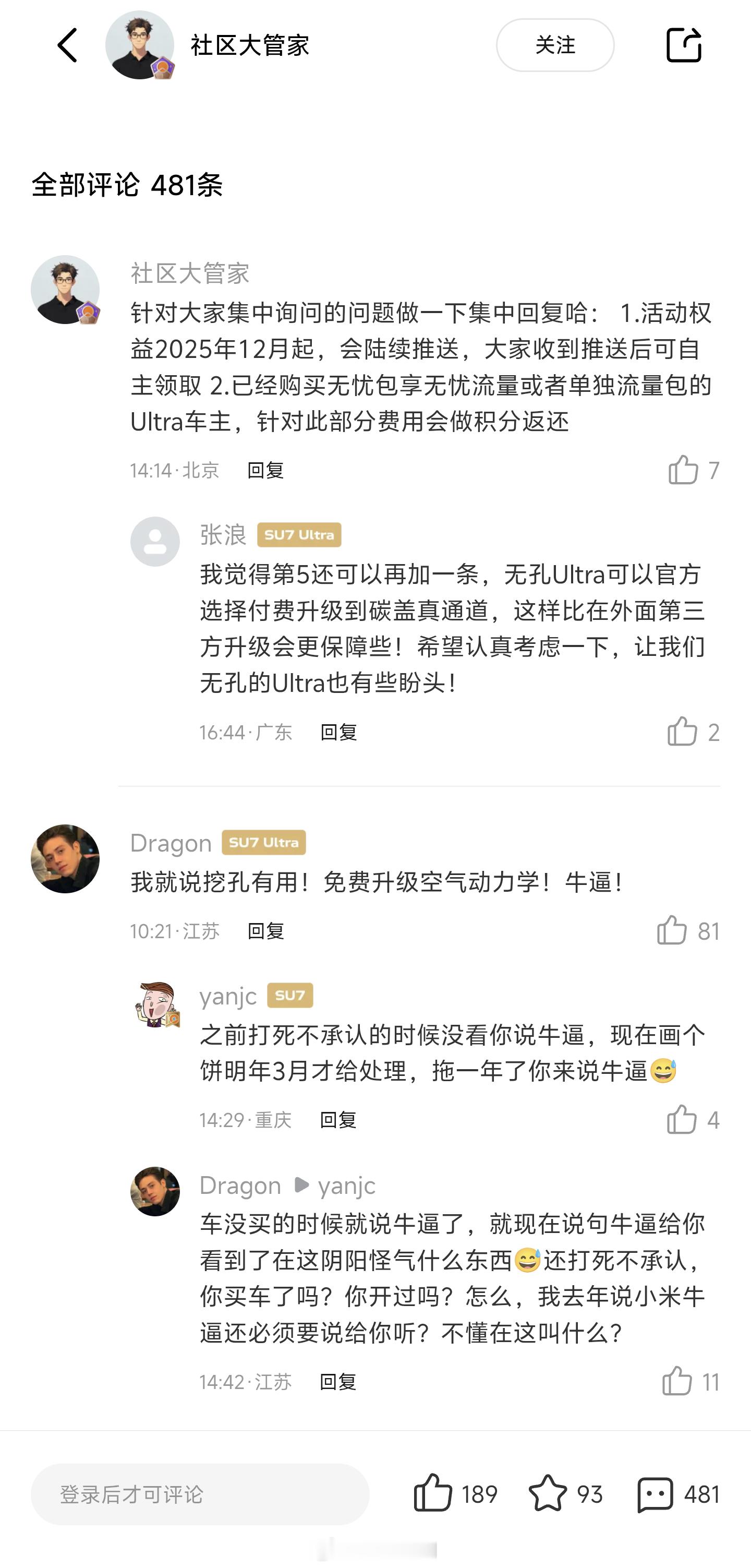小米发布 SU7 Ultra 十月车主关怀,看了下社区车主活跃度还挺高的[嘻嘻]