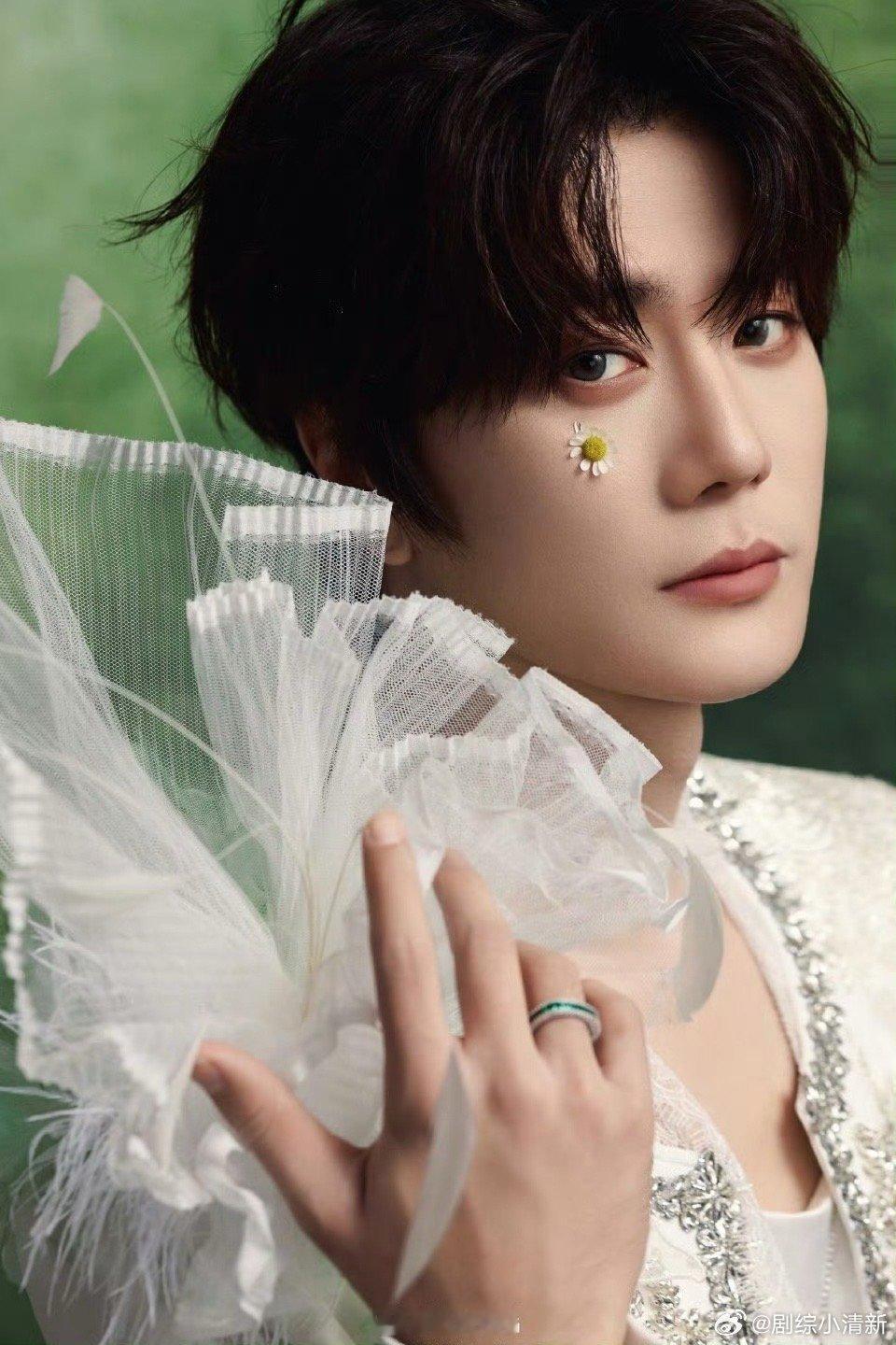 谁教陆虎把花朵当眼泪用的 谁教陆虎把花朵当眼泪用的!白色与绿色花瓣和衣装背景完美呼应,画面唯美又和谐,这“花泪”像仙子哭落的春,创意直接戳中审美!
