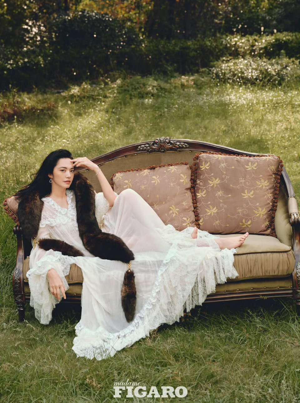 这次的“自在听风”主题大片太绝了!她以鹅黄色花朵帽半遮面,黑色长卷发轻舞飞扬,冷艳的妆容搭配烈焰红唇,神秘而优雅,仿佛在风中诉说着无尽的故事。姚晨费加罗十月刊封面姚晨费加罗自在听风封面