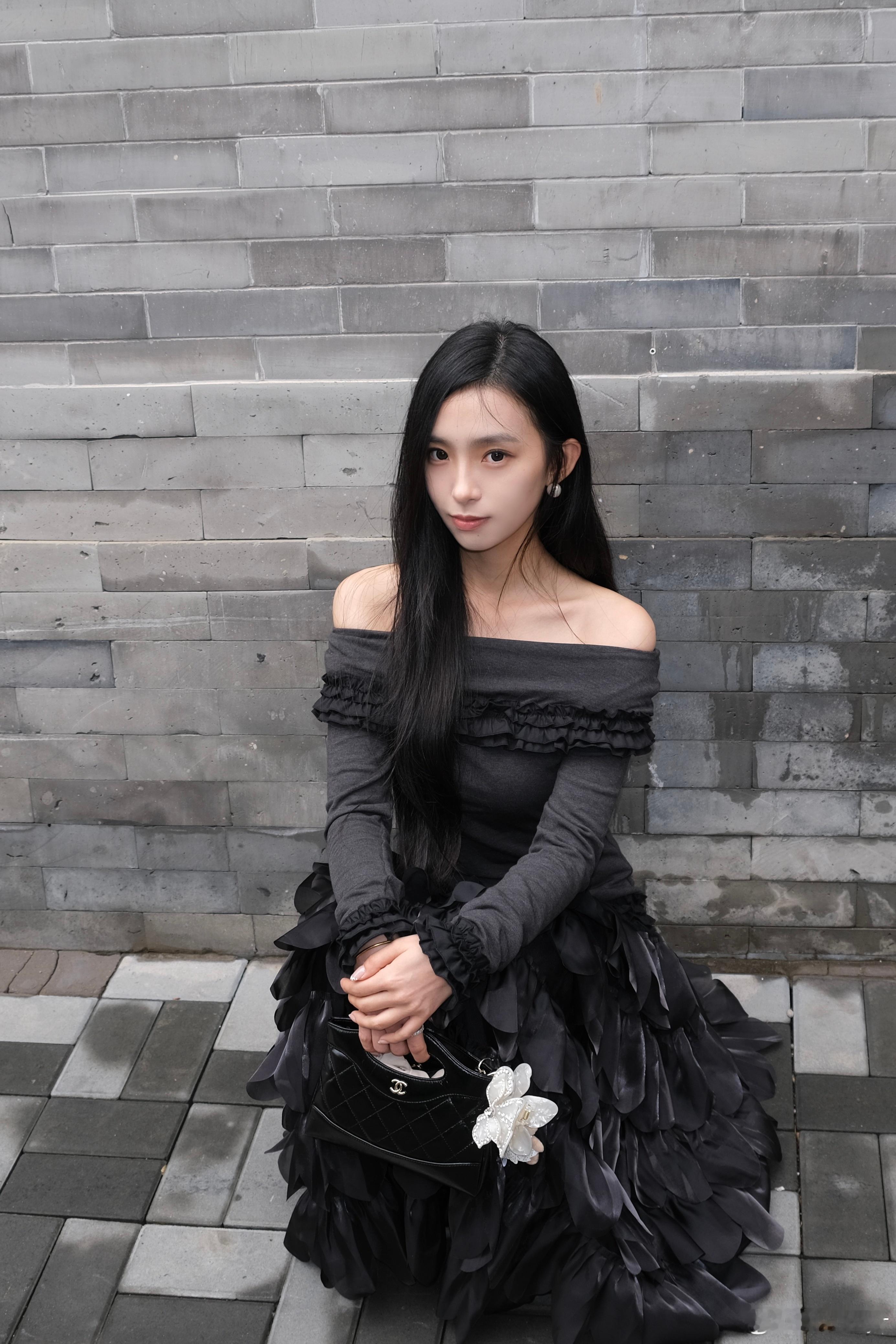 美图欣赏,看图写诗《黑纱魅影》林间幽径现芳踪,黑纱凝韵味千重。一眸