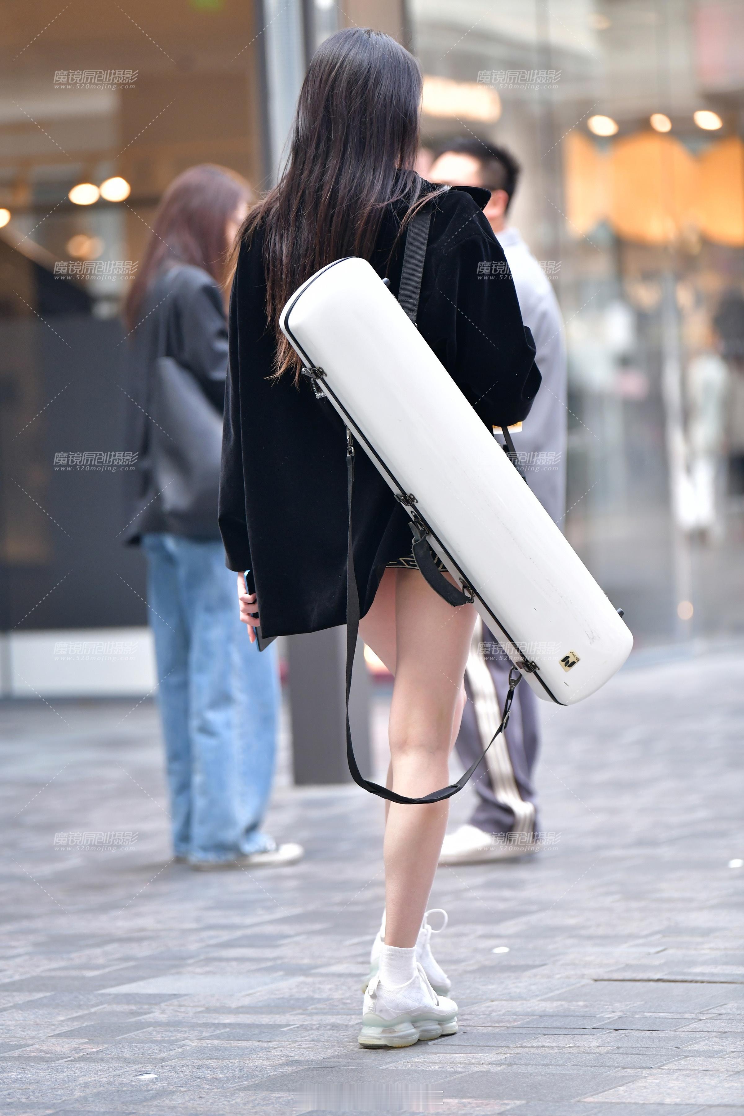 潮流focus小姐姐背的是啥?乐器吗?跟这短裙还挺搭!