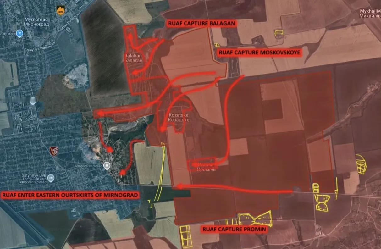 俄军并没有因为在红军城取得重大进展就放弃对季米特洛夫的攻击。恰恰相反,俄军已经从季米特洛夫的正北、东北、东南三个方向攻入。显而易见,俄军进攻作战丝毫不消极,而是加快节奏,争取在尽可能短的时间内完全占领红军城和季米特洛夫。俄乌冲突