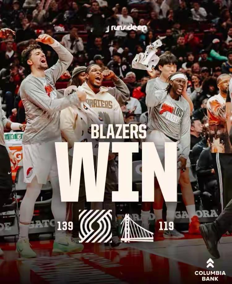 开拓者官方真是太懂人情世故了!今天开拓者在主场以139:119大胜实力强大的勇士