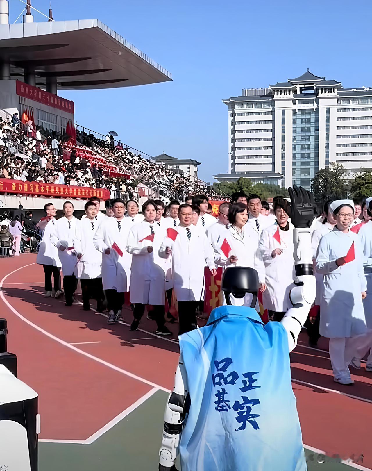 扬州大学运动会开幕式炸场!机器人直接把科技感拉满⚙️ 扬州大学的秋运会开幕式也太会整活了!今年居然把机器人请上了场,机械臂挥舞、精准互动的样子,瞬间秒杀全场菲林,围观同学的手机快门就没停过📸 最吸睛的当属土木与交通学院方阵里的「人形机器人」,圆滚滚的机身超萌,对着主席台上的老师和围观同学不停挥手、甚至主动伸手握手,奶酷奶酷的模样直接成了全场焦点。而机械工程学院的学子更狠,直接带着自己设计、制作的特色机器人进场,金属质感搭配学院标识,满屏都是「硬核浪漫」,把工科生的创造力展现得淋漓尽致 。 别看机器人在场上游刃有余,背后全是同学们的心血。之前扬大学子操控机器人表演时,光是基础的前进、转向就练到深夜,机器人要做到动作像「复制粘贴」,得抱着手柄逐秒抠细节,汗水滴在草坪上都是常事 。这次运动会的机器人互动,想必也藏着不少这样的打磨瞬间。 我觉得从学子亲手造机器人,到科技设备亮相方阵,扬大这波操作真的太圈粉!运动的活力撞上科技的酷炫,这才是青春该有的样子啊!
