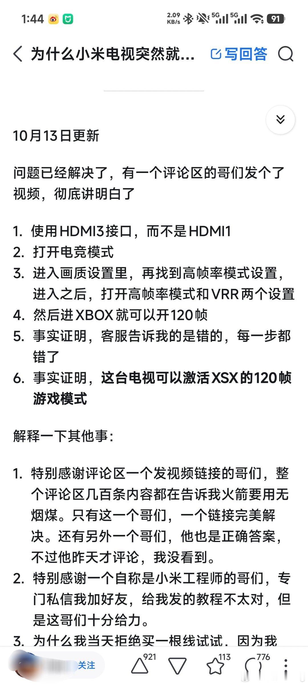 在知乎上刷到一个帖子,有个答主买了一台65寸小米电视s mini led,然后不会连xbox,去问拼多多客服,人家也不懂,就告诉他4k和120帧不能同时生效,这位就上知乎吐槽,想说小米虚假宣传。