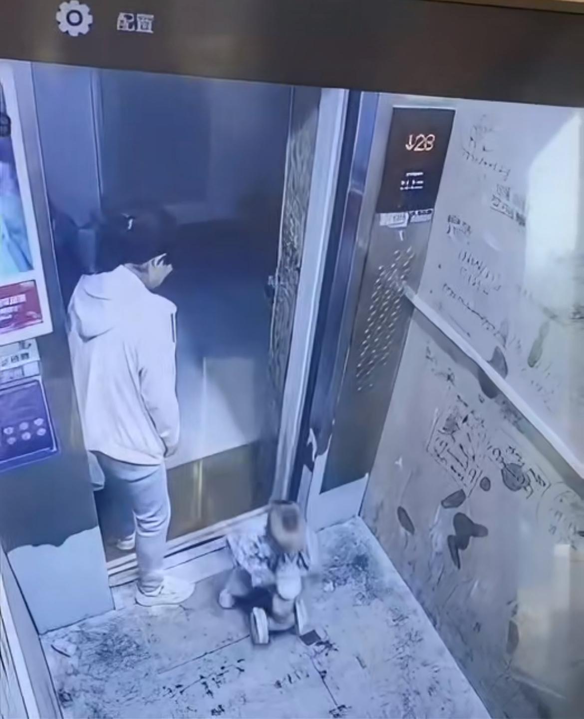 这个愚蠢的妈,身子挡住电梯,让孩子进电梯玩,遛一圈了,想起来要把玩具车搬进电梯,聪明地用一把挖沙的铲子堵住电梯门,电梯门长时间被堵,这时生气了直接关上,孩子关在电梯里面。挖沙的铲子把电梯卡住,电梯开始报警。要是孩子在电梯里出事,她铁定要去物业那里大闹。