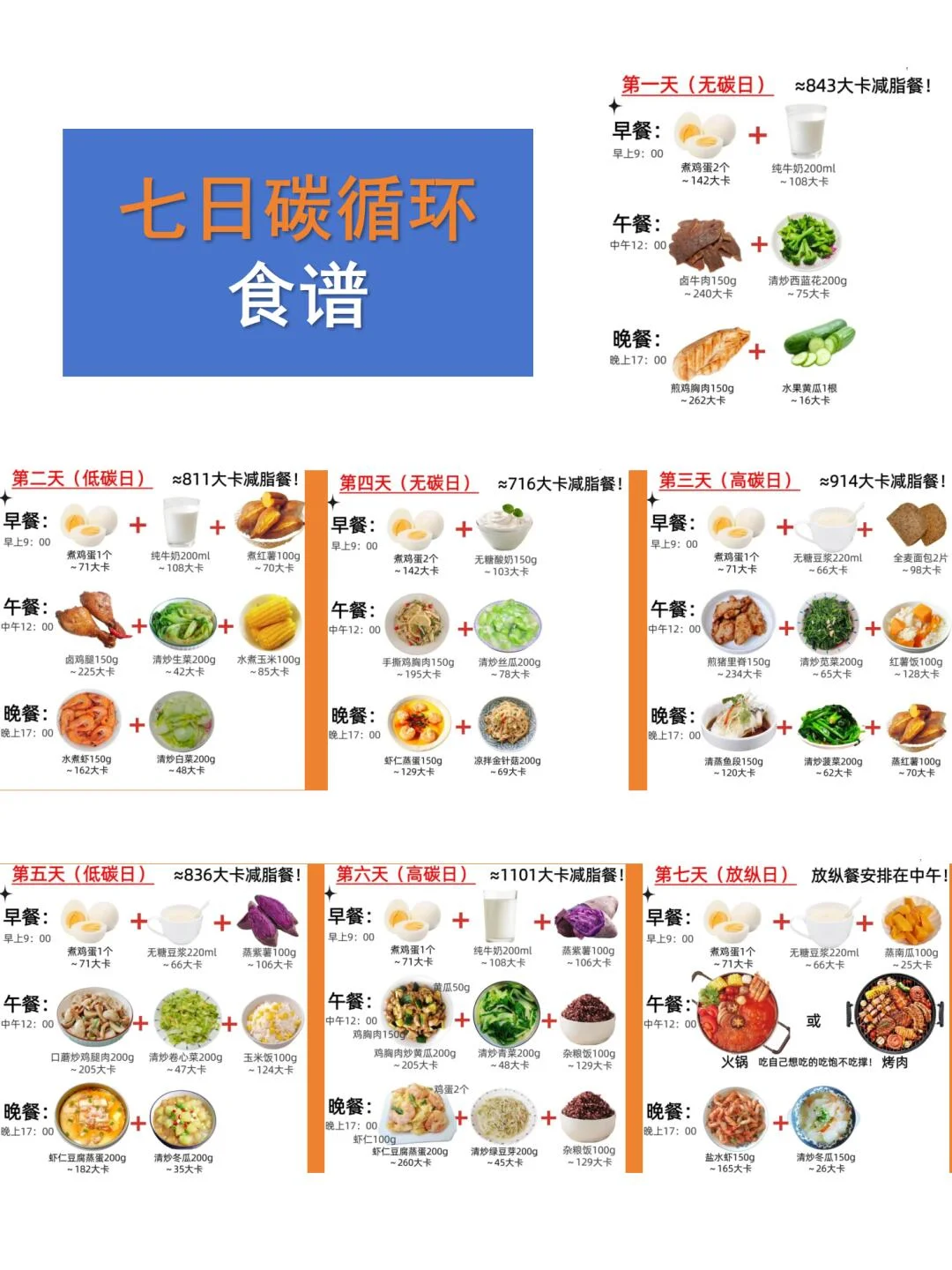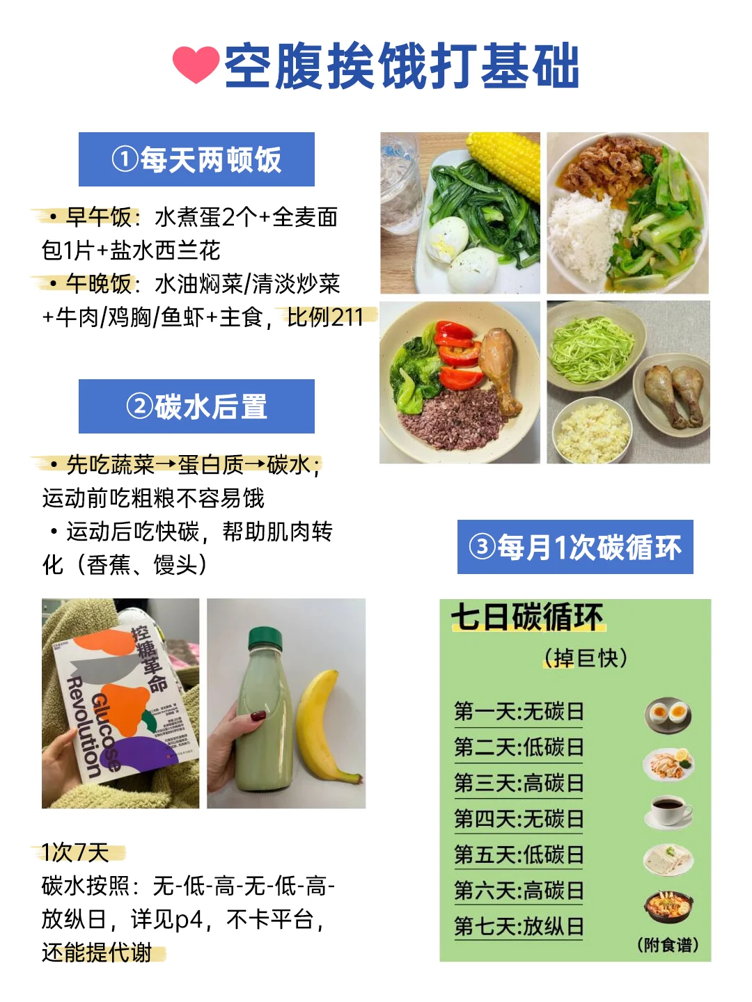 碳水按照:无-低-高-无-低-高-放纵日,详见p4,不卡平台,还能提代谢
