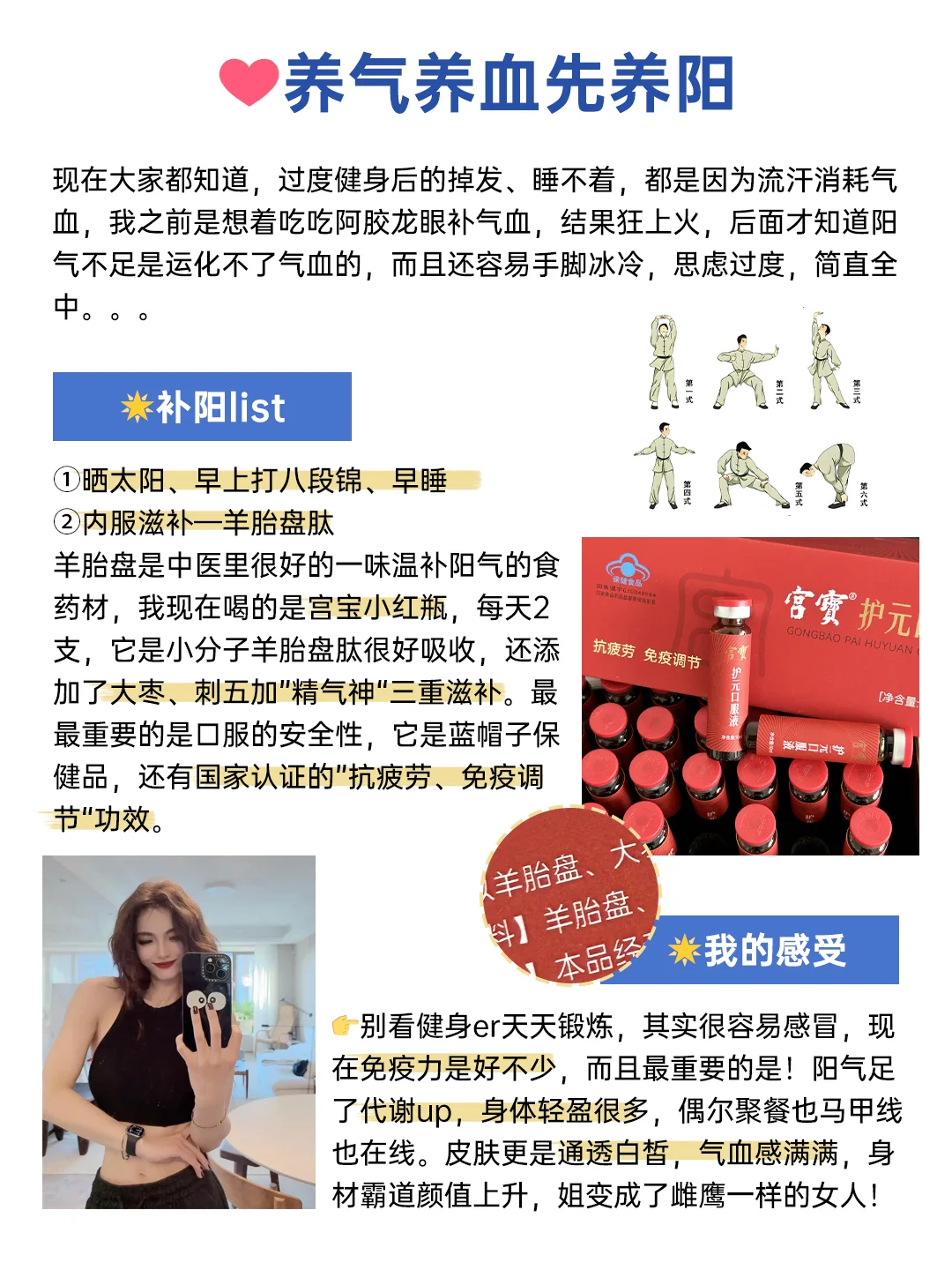 👉别看健身er天天锻炼,其实很容易感冒,现在免疫力是好不少,而且最重要的是!阳气足了代谢up,身体轻盈很多,偶尔聚餐也马甲线也在线。皮肤更是通透白皙,气血感满满,身材霸道颜值上升,姐变成了雌鹰一样的女人!