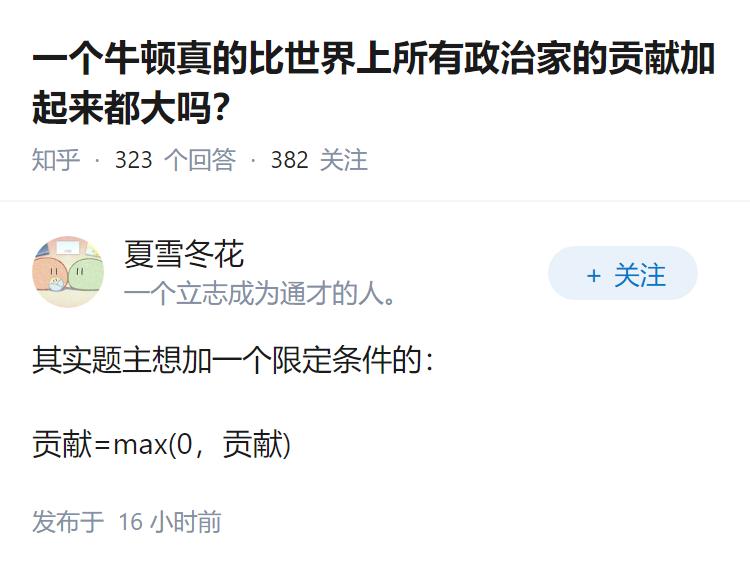 一个牛顿真的比世界上所有政治家的贡献加起来都大吗?
