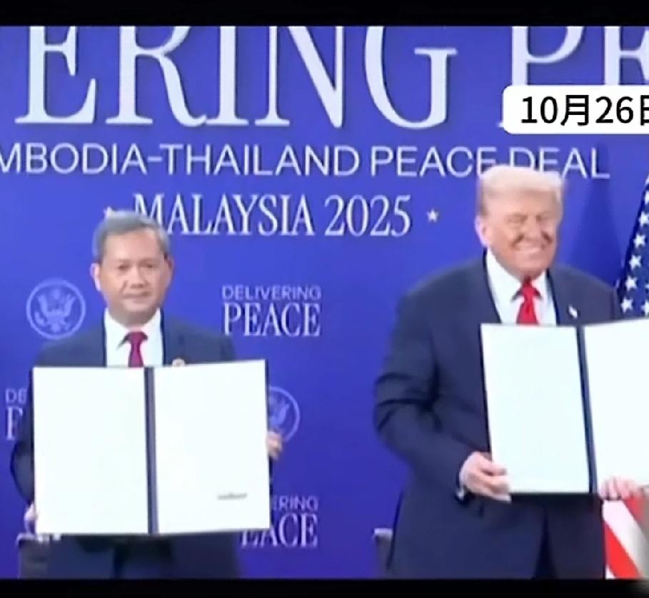 特朗普又赢了! 泰国和柬埔寨签署了边境地区的联合声明,特朗普把他坐在旁边,手里也