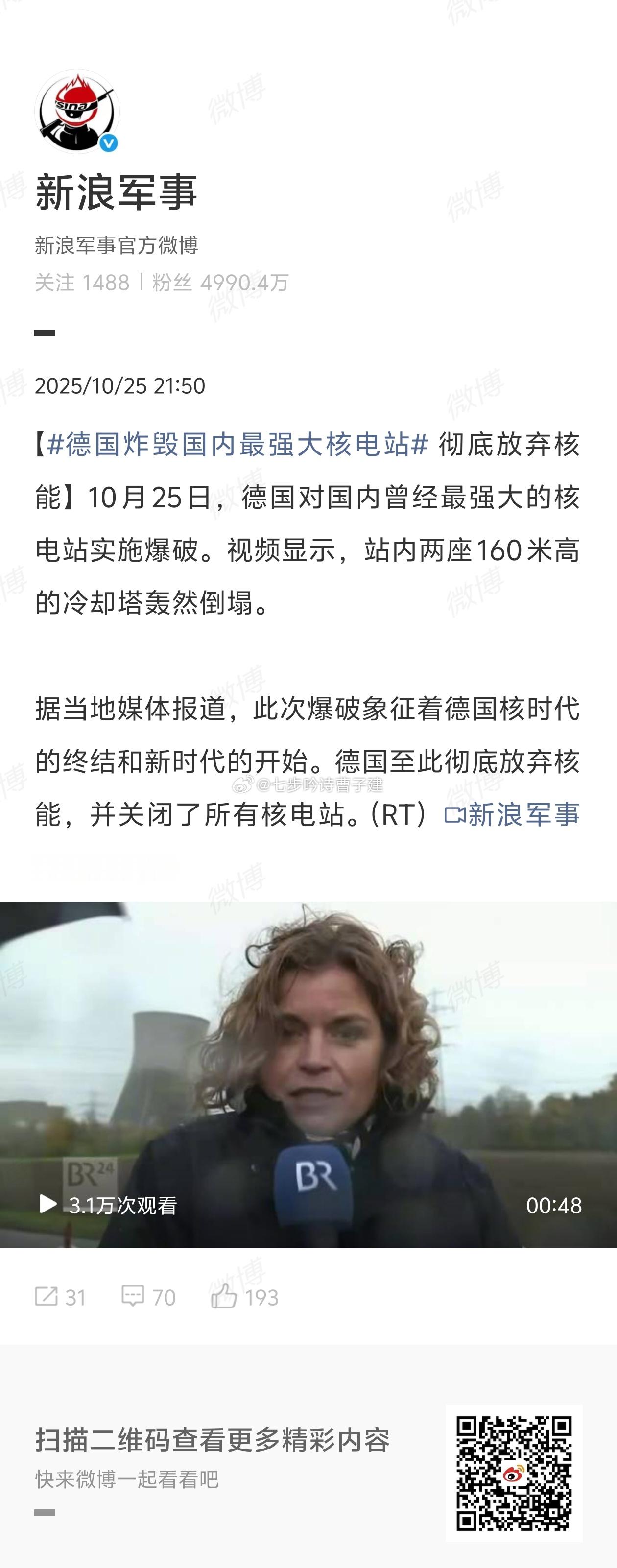 德国爆破国内最强大核电站地狱笑话来了,向法国买核电